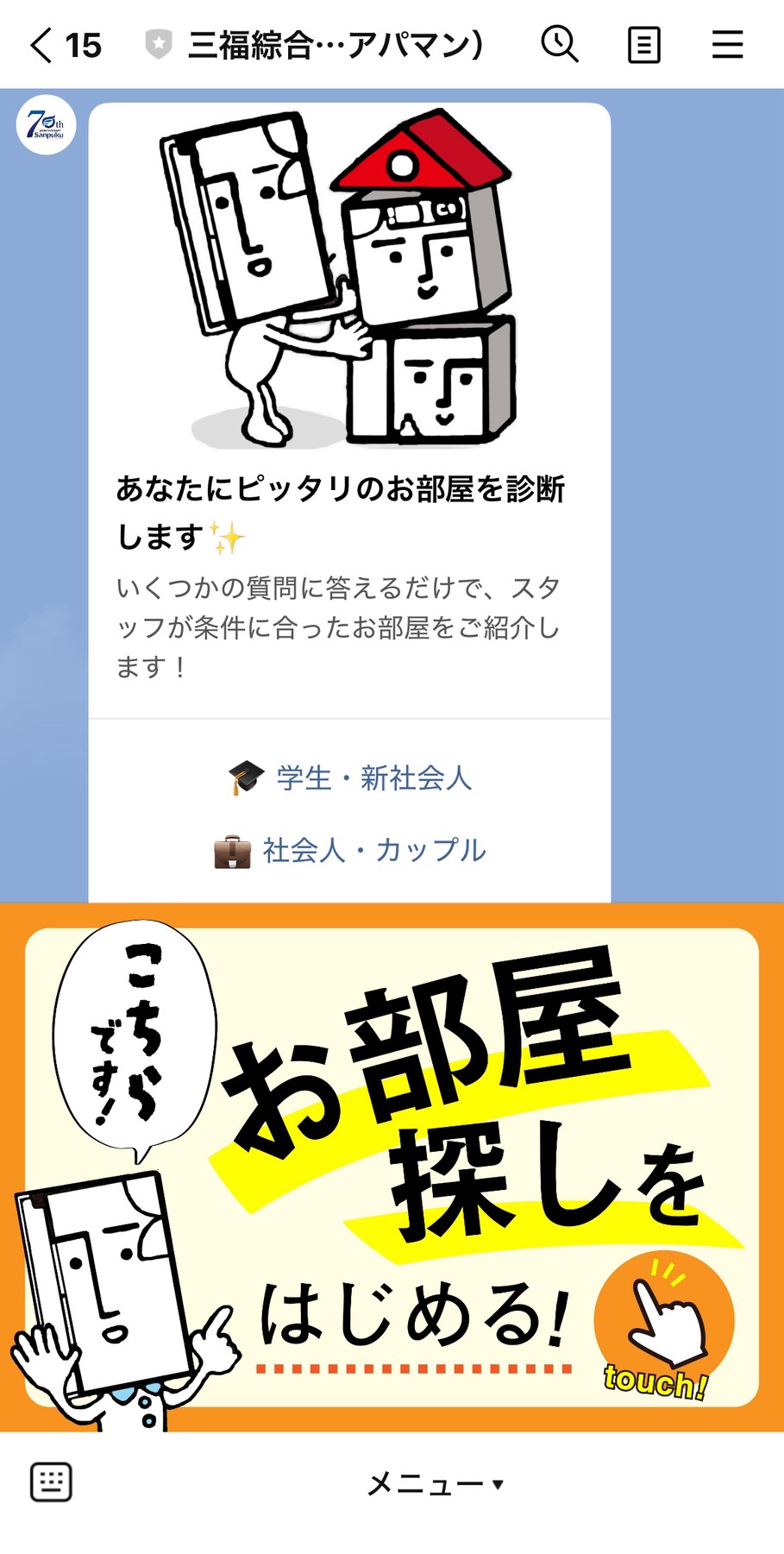 ホーム商品サービスLINEでカンタンお部屋探し!三福綜合不動産が“お部屋診断”機能をリリース