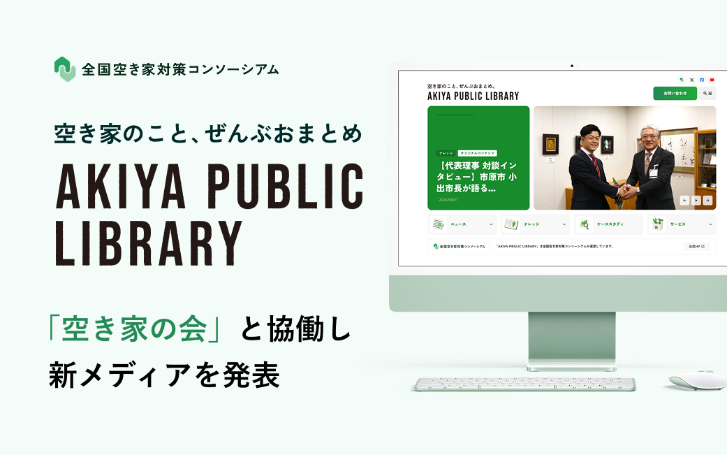 こうした課題を背景に、空き家対策に携わる関係者が“公共的な知の基盤”として活用できる場を提供するため、『AKIYA PUBLIC LIBRARY』を公開しました。本メディアでは、最新ニュースやニュースに対する専門家のオピニオン、研究・調査の情報、自治体や民間企業の空き家解決事例などを横断的に掲載し、空き家対策を推進する行政担当者や空き家問題啓発に繋がるメディア関係者が必要な情報を一元的に取得できる環境を整備します。