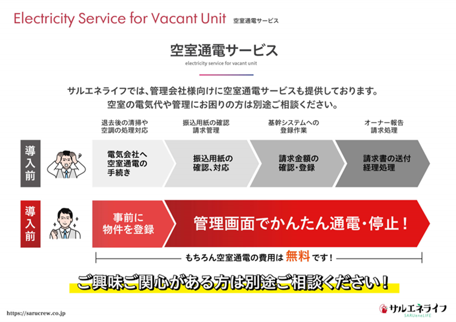 管理会社が必要とする「空室時の電気通電手続き」を、