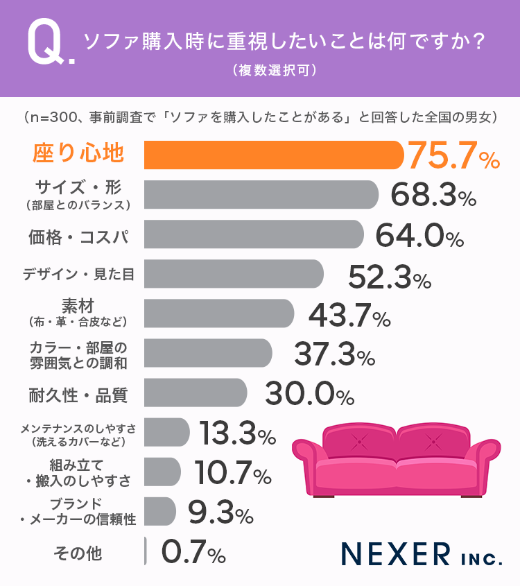 株式会社NEXER・ソファ購入時に重視したいことに関する調査