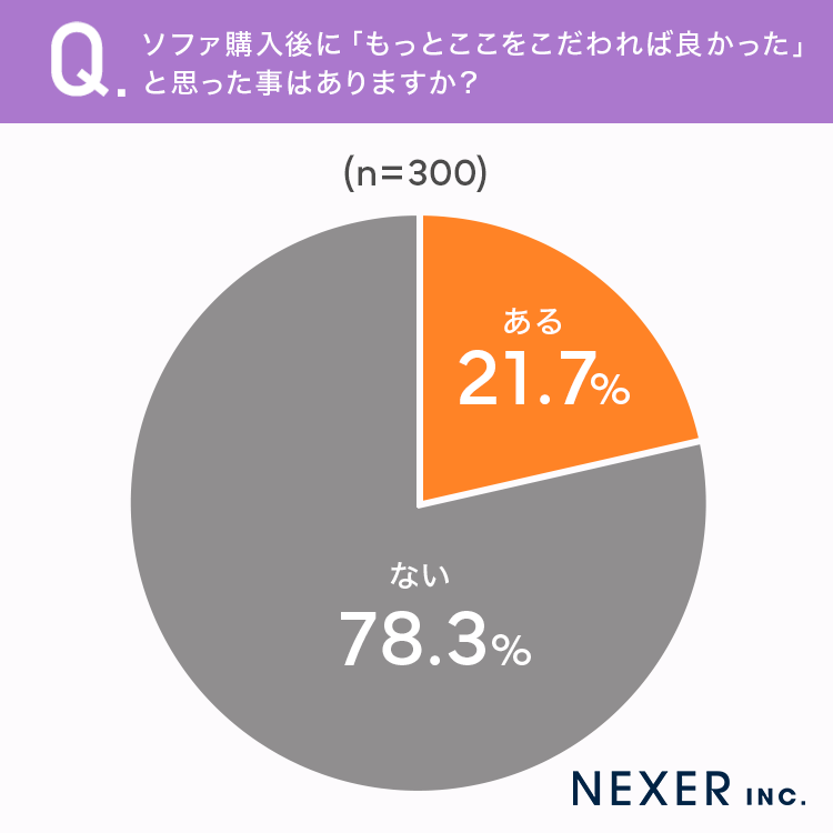 21.7%と2割以上の方が、ソファ購入後に「もっとここをこだわれば良かった」と思ったことがある、と回答しています。