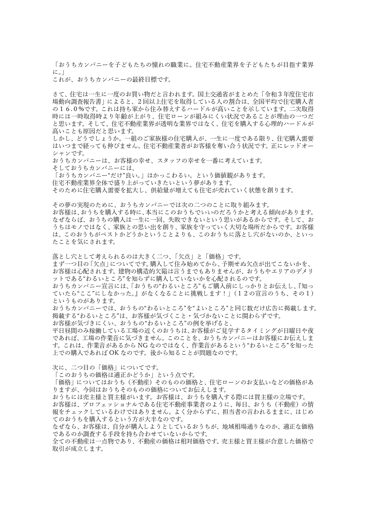 「おうちカンパニーを子どもたちの憧れの職業に。住宅不動産業界を子どもたちが目指す業界に。」