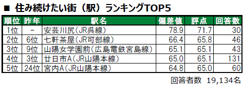 ■住み続けたい街(駅)トップは、初登場の安芸川尻