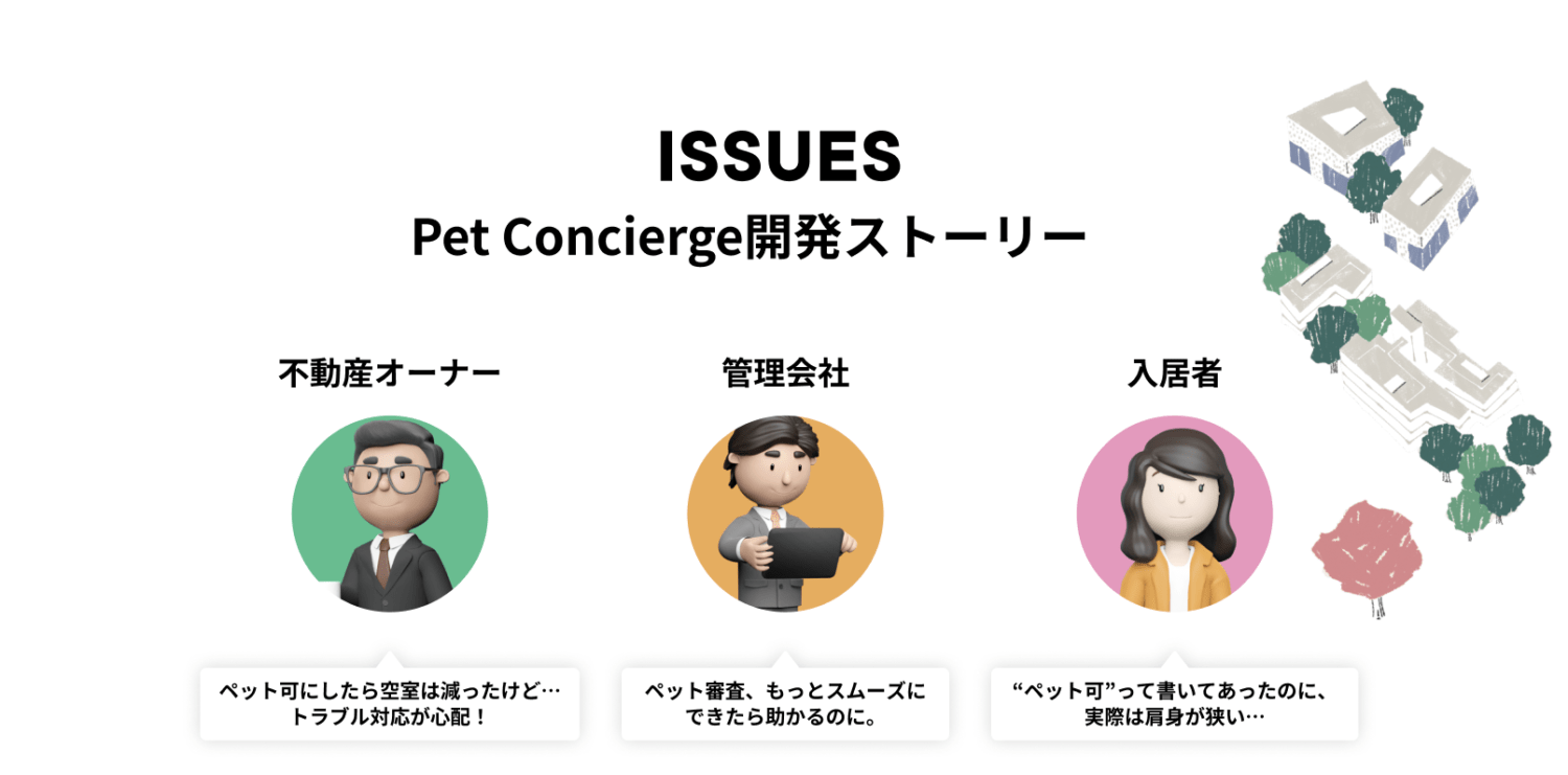 こうした実態をもとに、当社は 「申請・管理の透明化」「トラブルの芽を早期に防ぐ仕組み」「獣医・建築家・賃貸管理の専門家の総合的な知見」 を組み込んだ入居者向けサービスの必要性を痛感。これがPet Concierge開発の出発点となりました