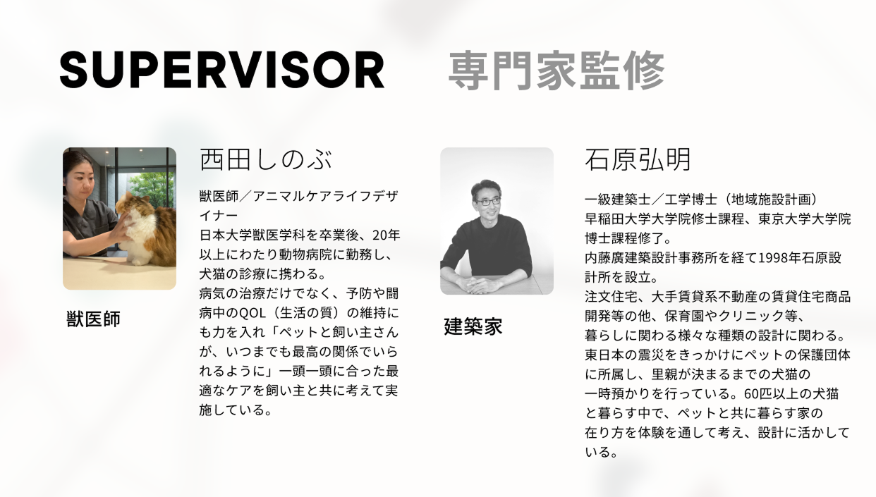 獣医師・建築家・ペット共生の専門家が監修した犬種・猫種別Q&Aやマナー啓発コンテンツを搭載。