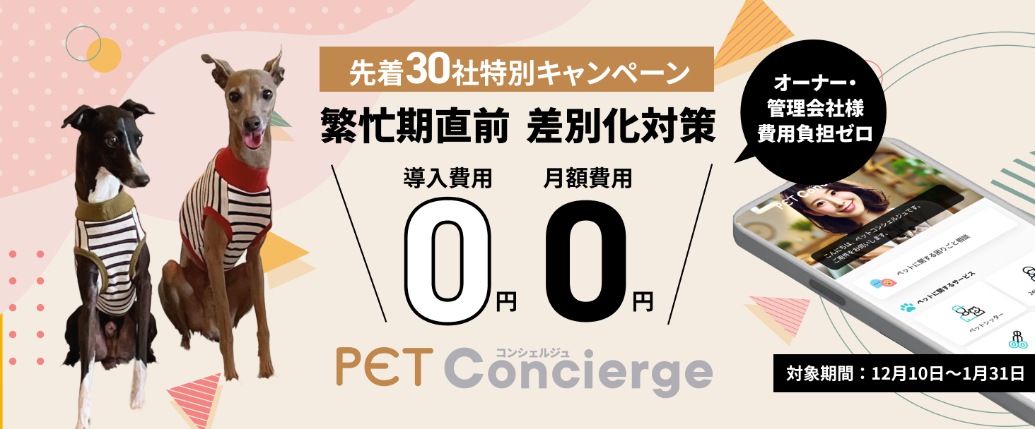 期間中は初期費用・利用料が無料で、Pet Conciergeをリスクなくお試しいただけます。