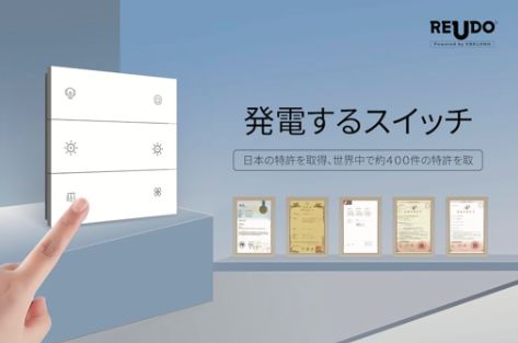 特許取得の発電するスイッチ。押す力で発電し、無線で信号を送るため、リフォームやオフィス改装に最適。自由なレイアウトで省施工、省エネを実現し、調光・調色にも対応。住宅やマンション、看板など幅広く活用できます。