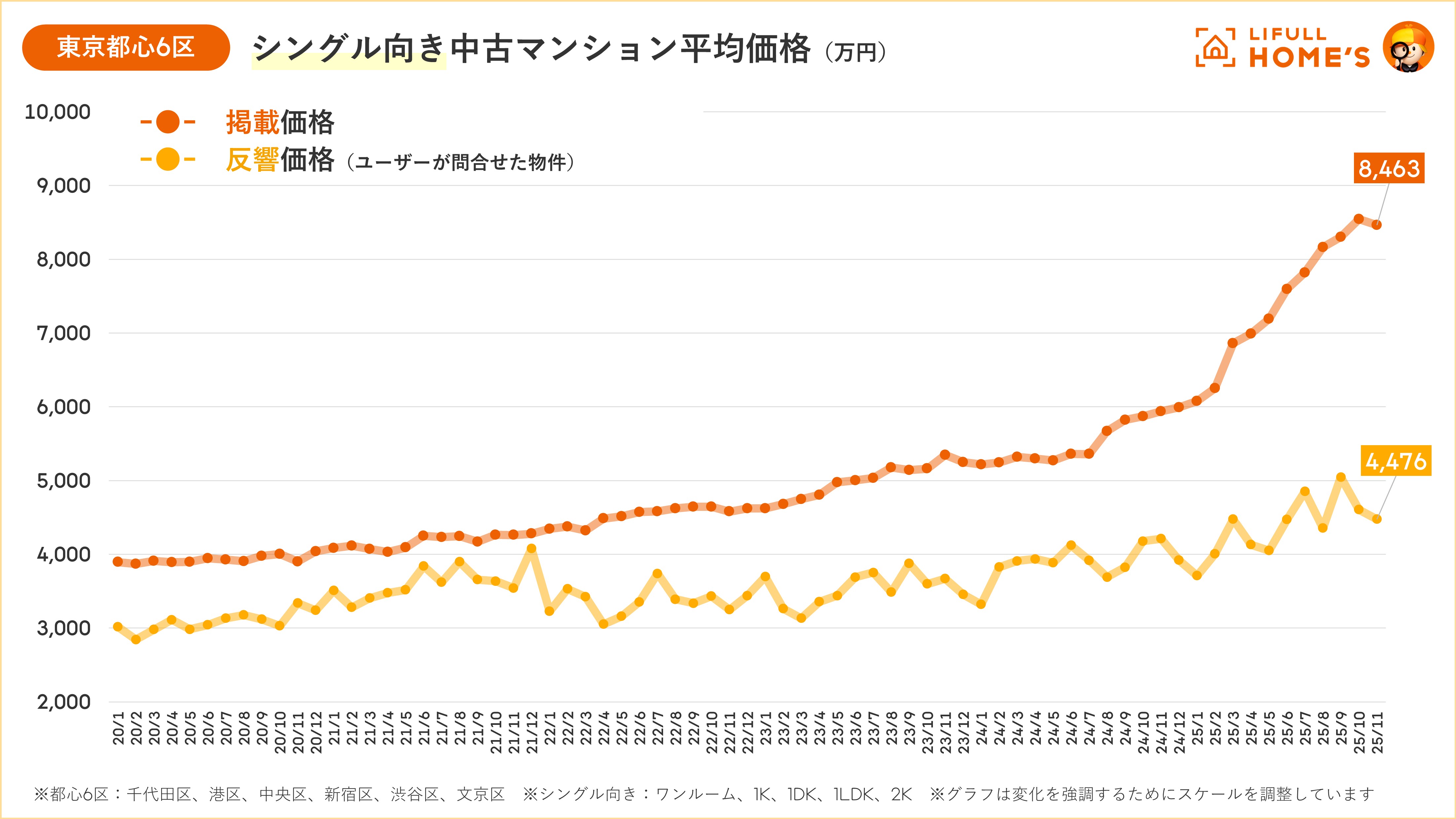 東京都心6区の掲載価格は8,463万円(前年同月比142.5%)