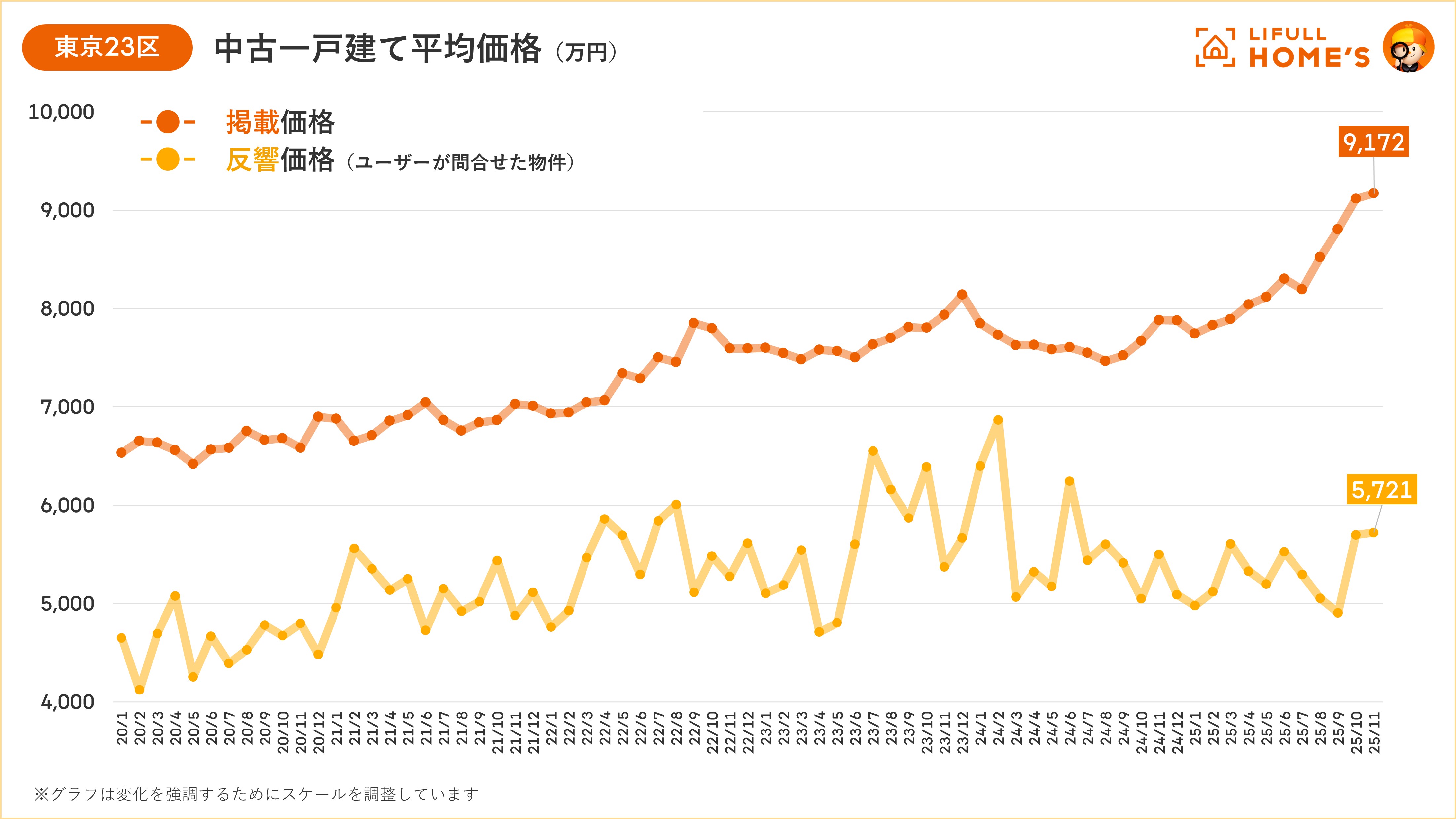 東京23区の掲載価格は9,172万円(前年同月比116.4%)で過去最高を更新