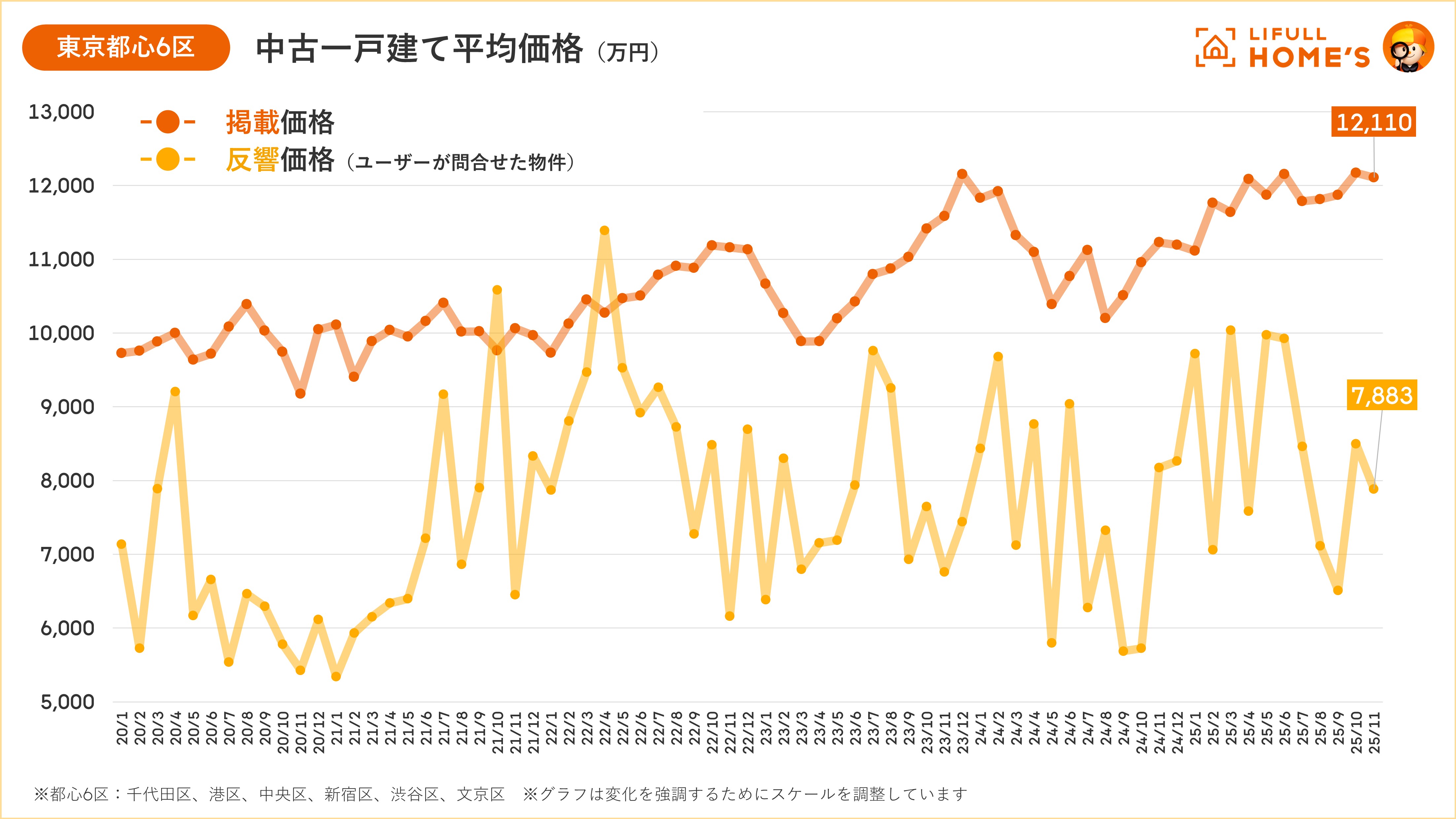 東京都心6区の掲載価格は1億2,110万円(前年同月比107.8%)