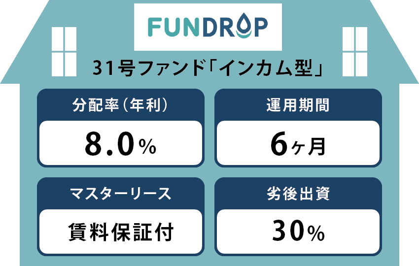 FUNDROP 31号ファンドは、利回り(年利)8%、賃料保証付きにて運用