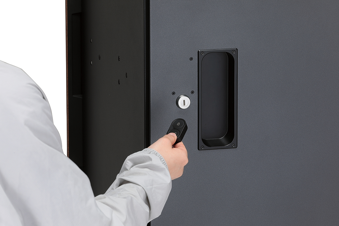 施錠は、宅配物を投入後に、宅配業者が内扉のつまみを回すことで完了します。荷物を取り出し、取出扉を閉めると、自動的に次回の荷物を受け取れる状態になります。