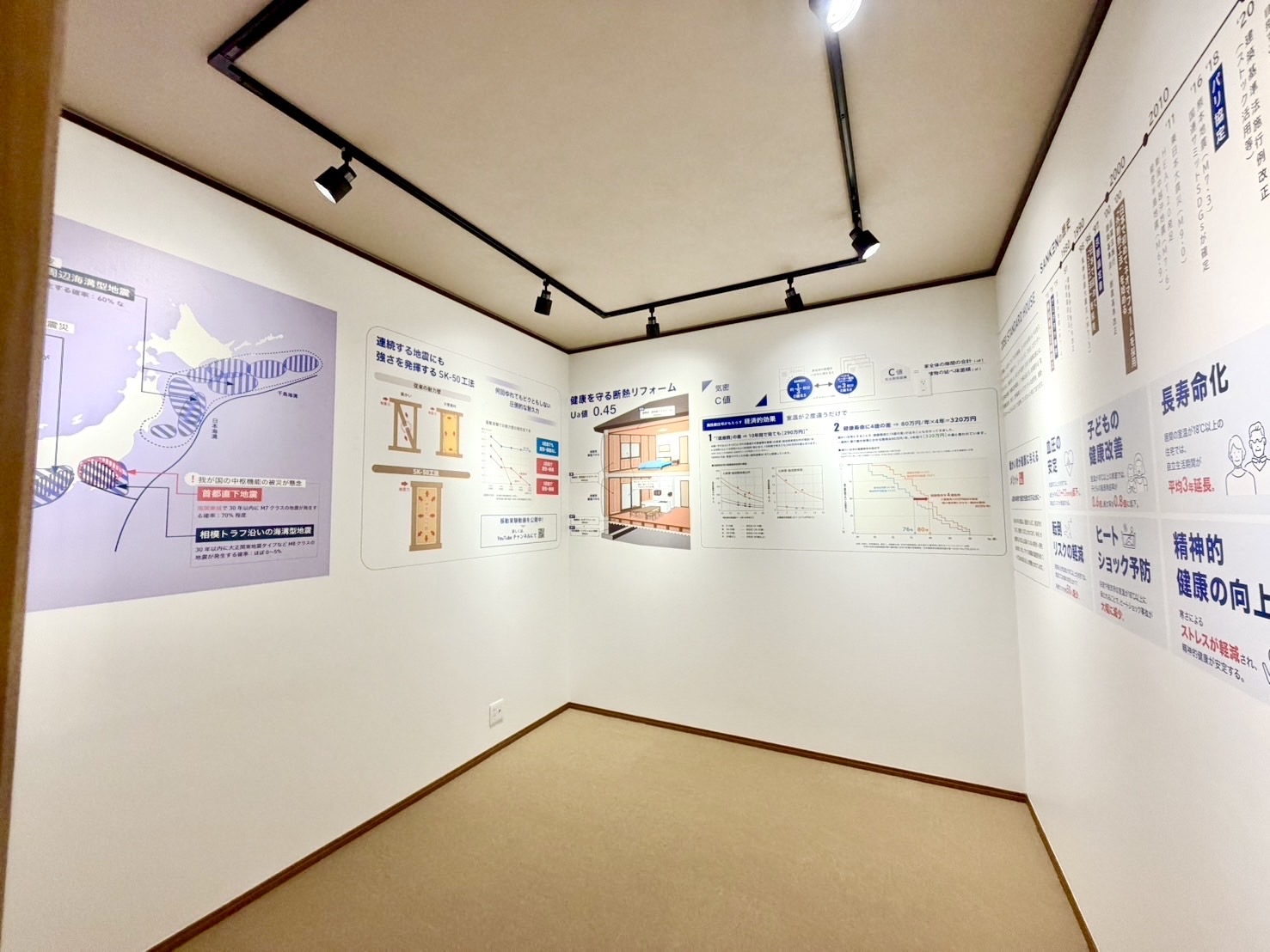 断熱の有無が暮らしに与える変化を科学的に体感できる展示多数。