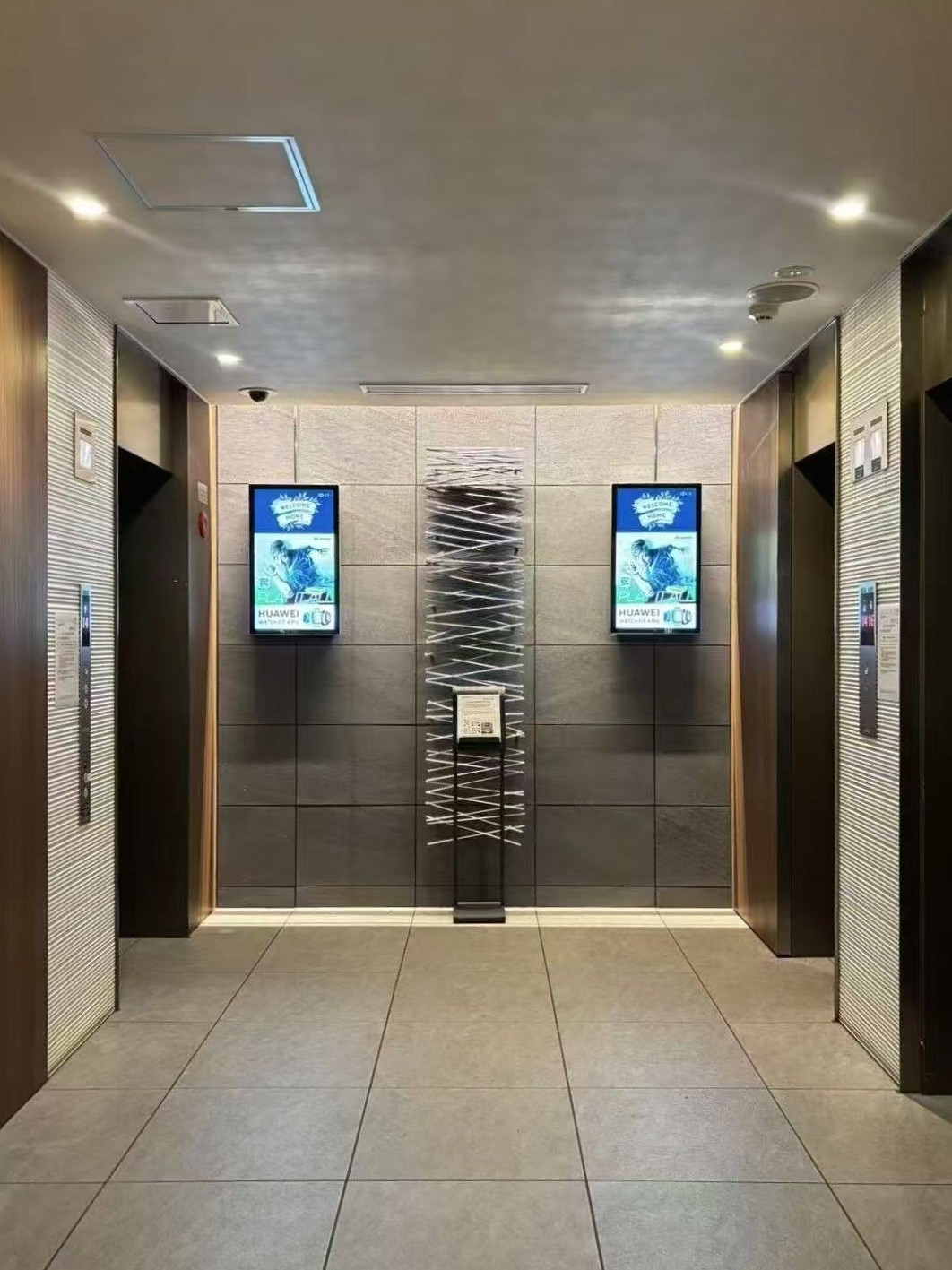 目線の高さで高い視認性– エレベーターホールの壁面、目線の高さにディスプレイを設置。居住者や 来訪者が毎日繰り返し目にすることで、高い認知向上効果が期待できます。