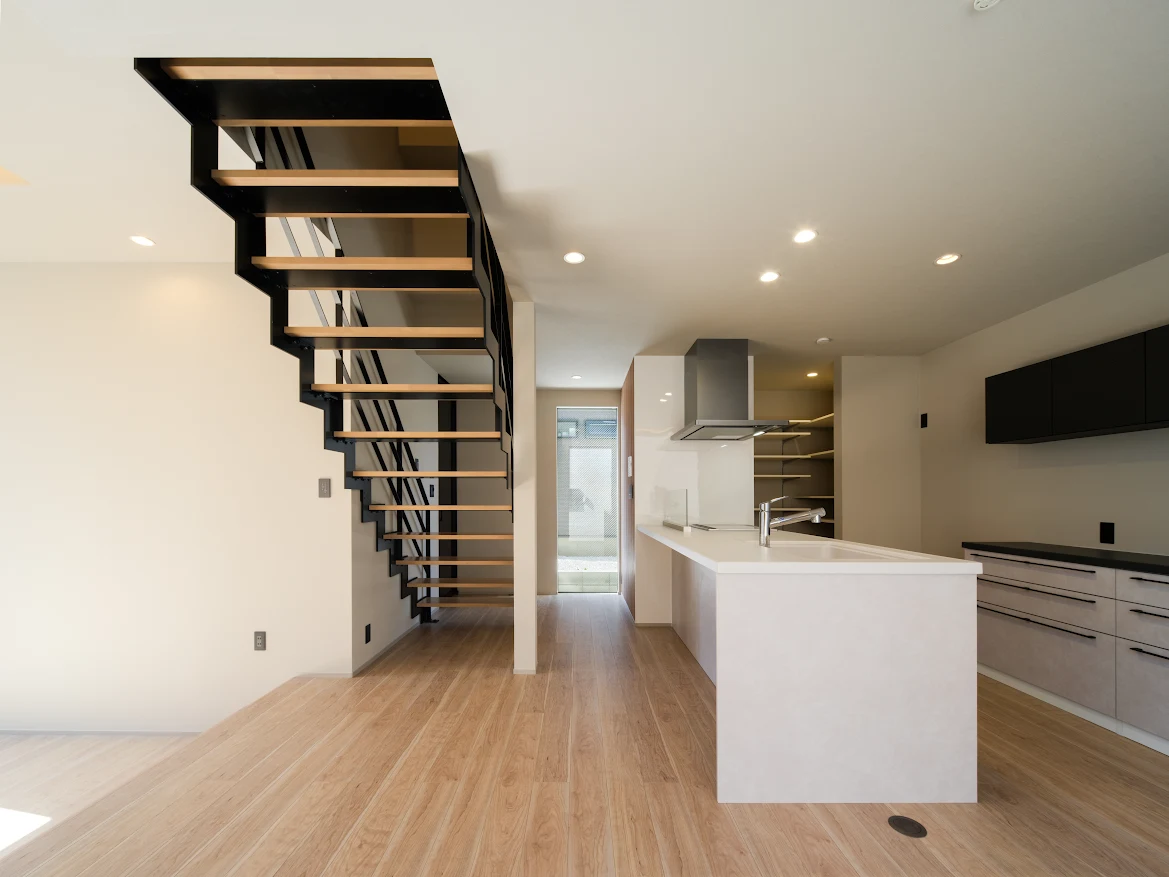 ・本来のボックス階段に必要な壁がなくなりLDKと一体的に見せることができるため(OHA)