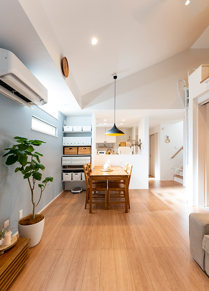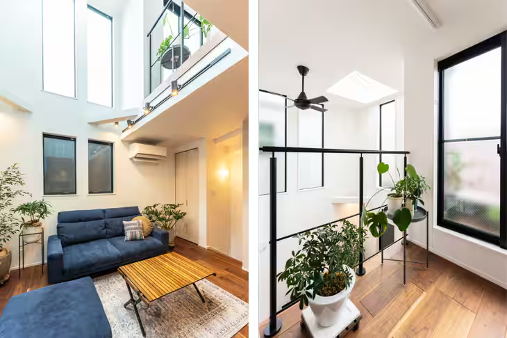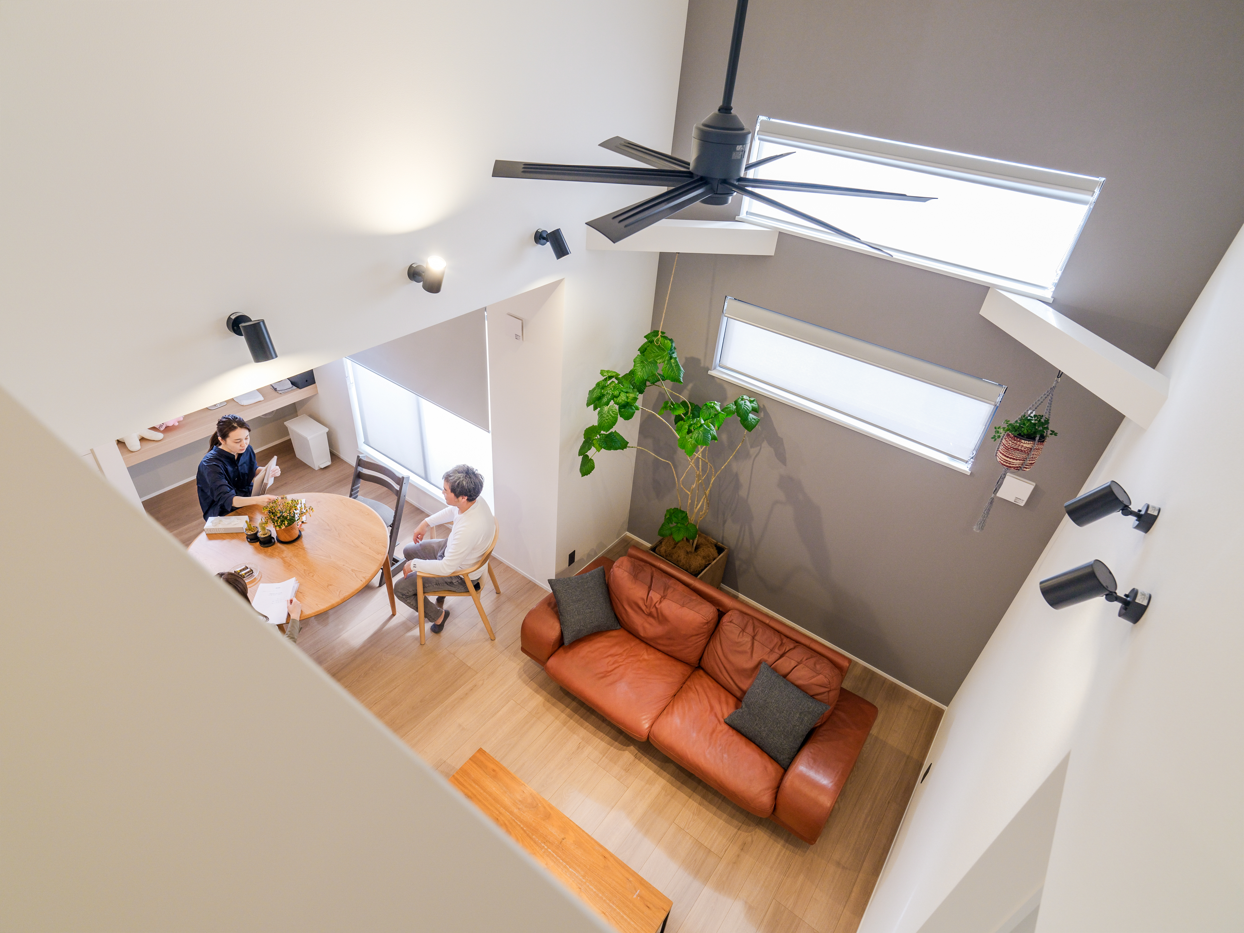 建物内で1階と2階、2階と3階の間の床や天井を設けず、上下の階を連続させた縦長の空間のことです。採光性が高まり、明るく開放的な空間が生まれるほか、家族間のコミュニケーションが円滑になるのがメリットです。