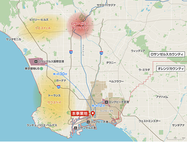 本物件が立地するロングビーチ市は、ロサンゼルス都市圏の南部に位置し、交通利便性と生活の快適性を兼ね備えた都市です。本物件は、主要高速道路710号線・405号線に近接し、ロサンゼルス国際空港へは車で約30分、国内線の拠点であるロングビーチ空港へは約12分でアクセスが可能です。さらに、本物件徒歩約3分の5th St駅よりロサンゼルス市中心部へは鉄道(ライトレール)が直通し、ロサンゼルス市中心部や周辺都市へもスムーズに移動することができます。また、オレンジカウンティ、サウスベイの産業エリアなど雇用集積地へのアクセス性も高いエリアです。