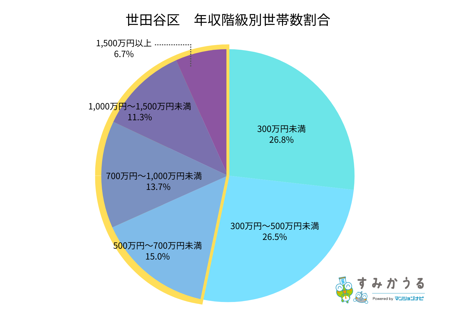 特に700万円以上の層が31.7%と多く、隣接する杉並区や目黒区と比較しても高所得層の比率が高いことから、区全体の平均年収を押し上げています。