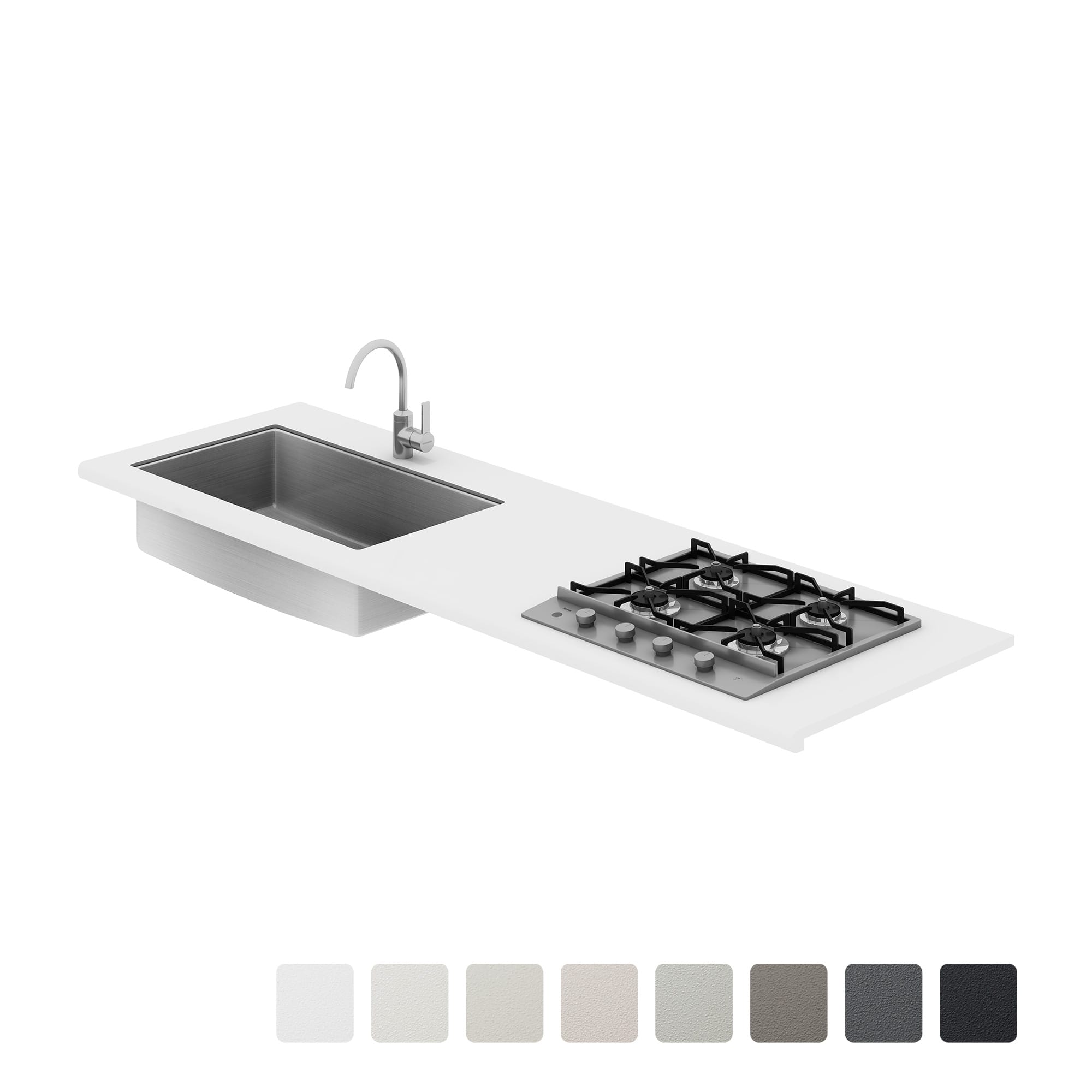 商品名:マットカラーのキッチン天板 コンロ&スクエアシンク 見付20