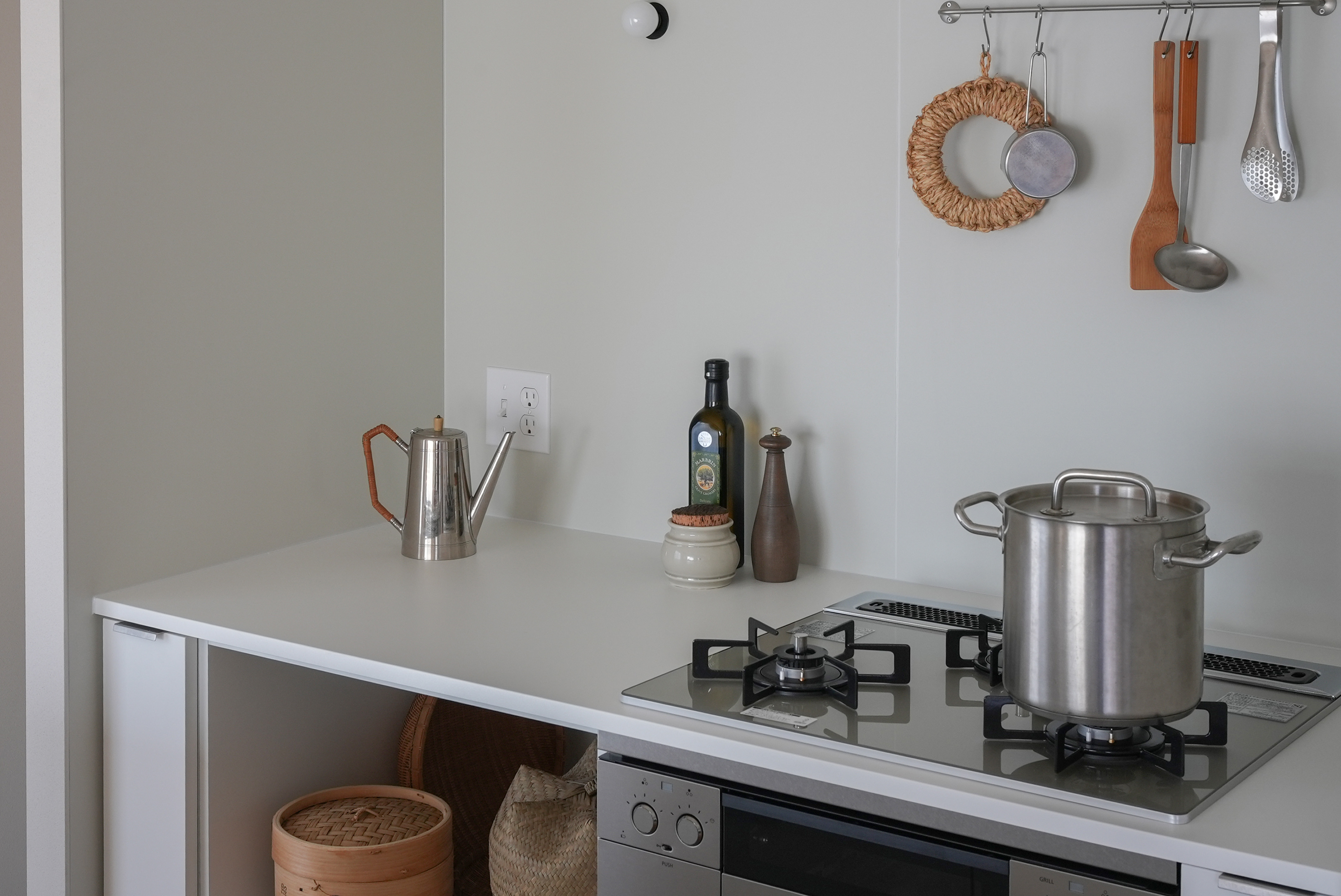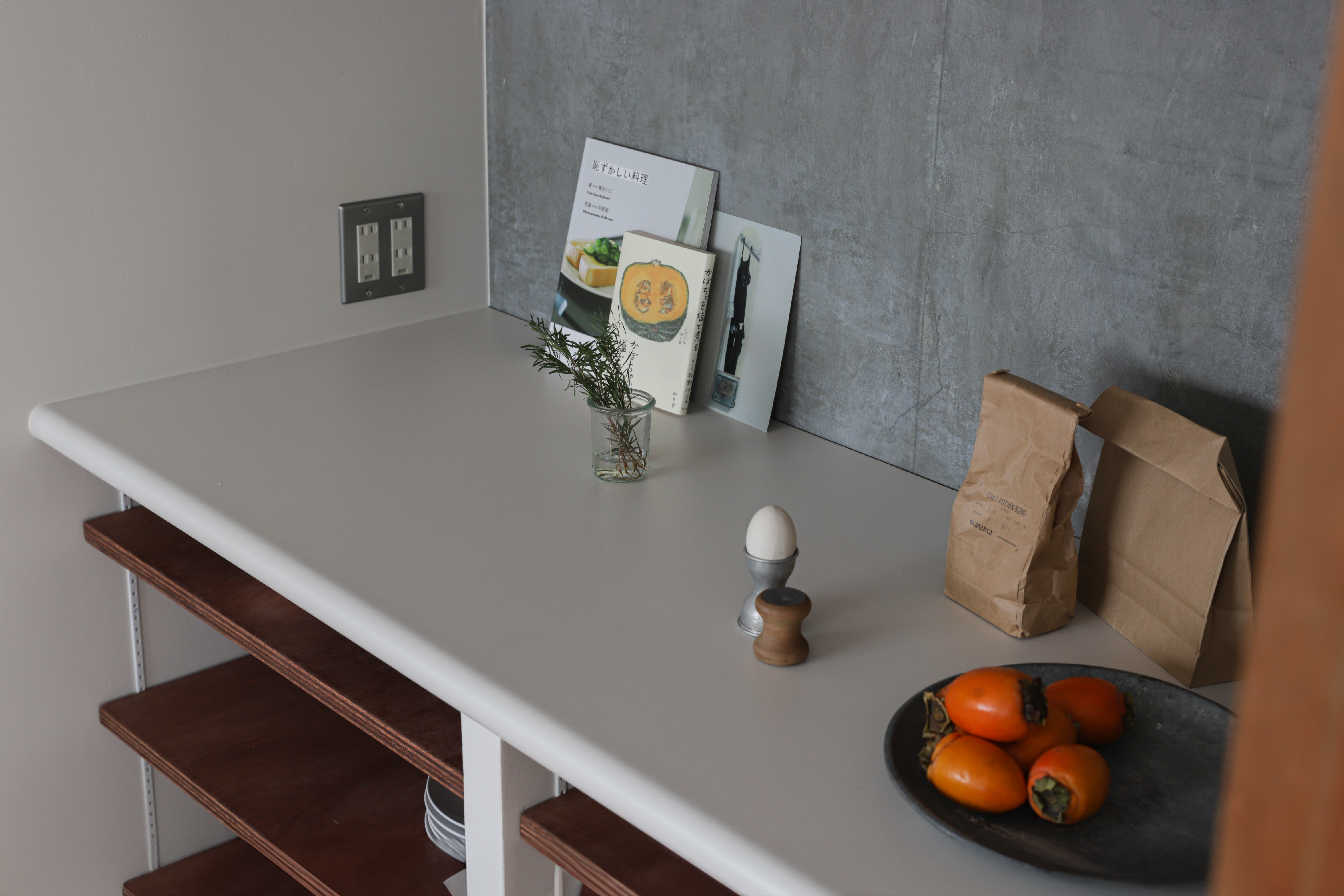 シンクのあり・なし、コンロのあり・なしも選択でき、Ⅱ型キッチンやL型キッチンも計画が可能。幅と奥行きが200mmからオーダーできるフラットタイプの展開もあり、収納カウンターの天板や棚板にも使えば、一体感のあるキッチン空間づくりが可能です。