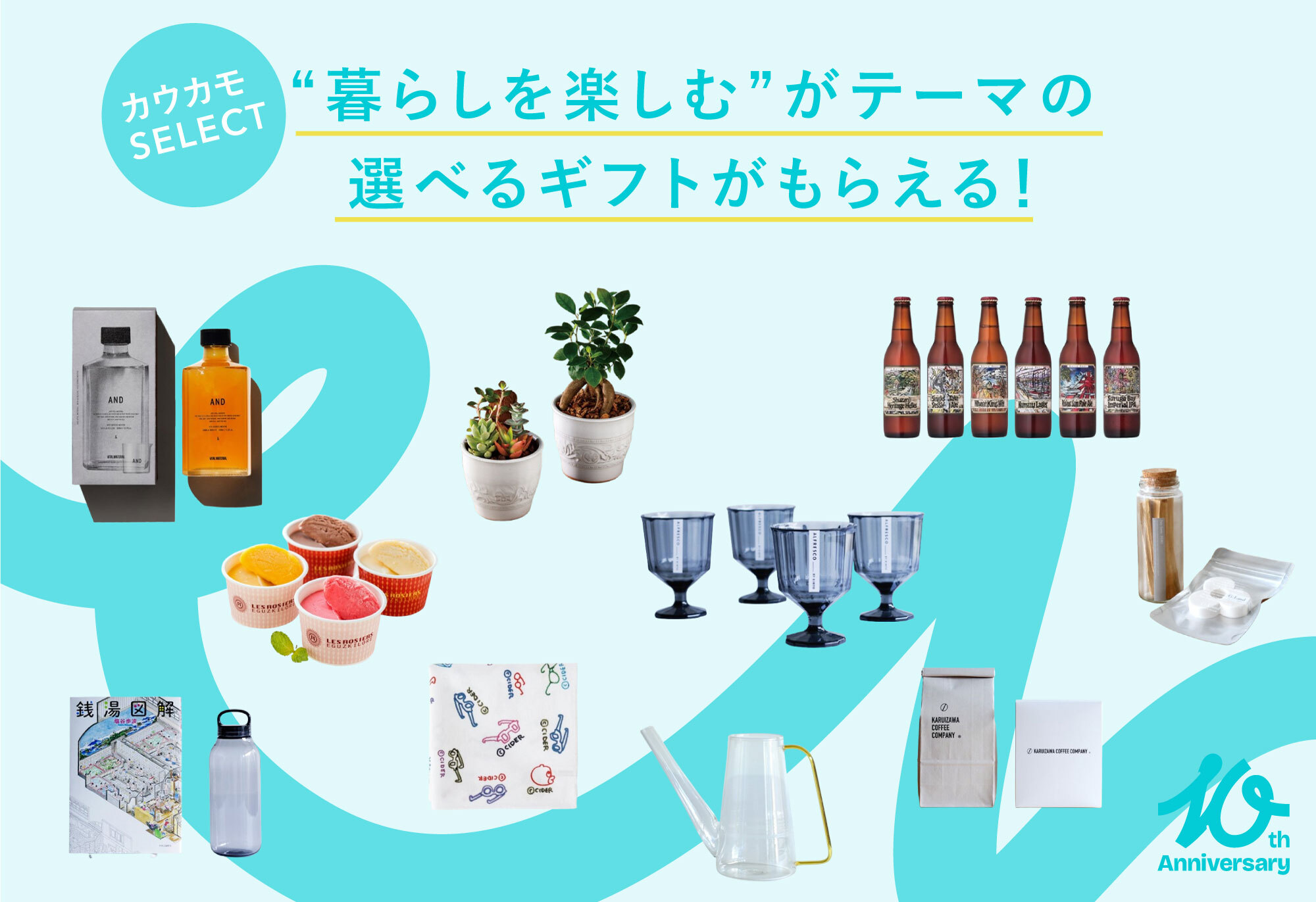 もらった人がほしいものを選べるギフトサービス「dōzo」のカウカモオリジナル版として、「暮らしを楽しむ」をテーマにカウカモがセレクトした10アイテムから1つお好きなものをお選びいただけます。