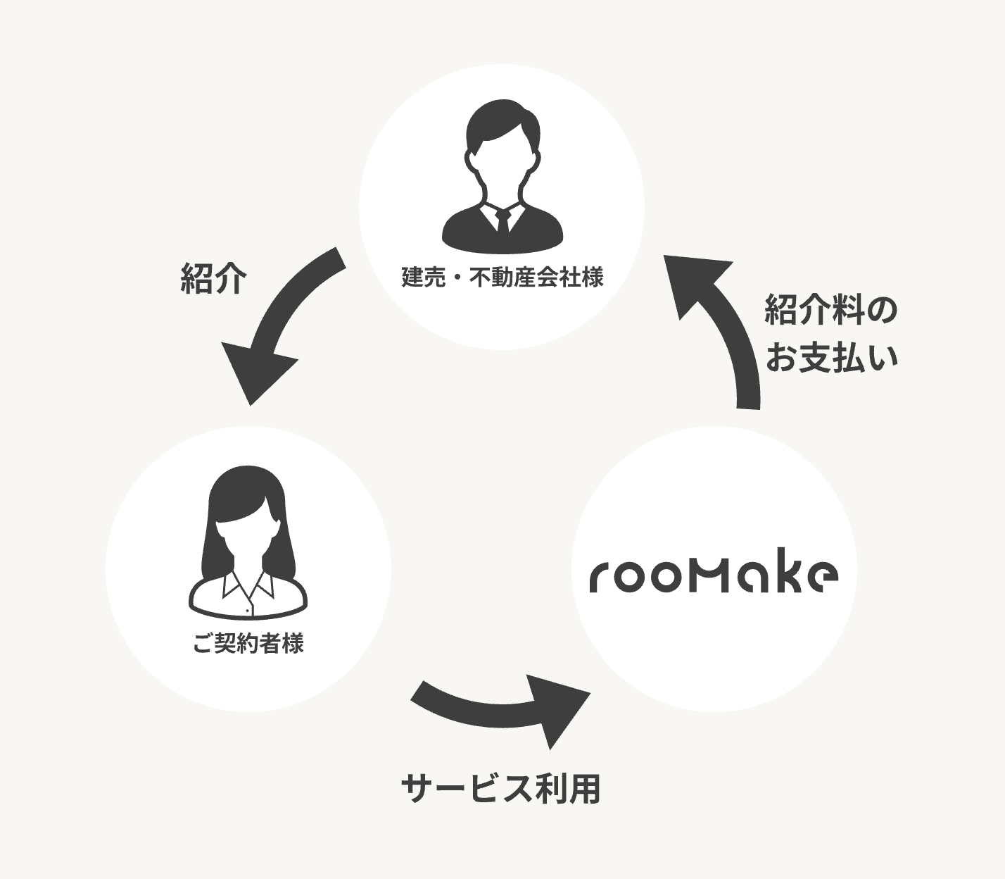 各社が紹介した顧客が、安心してrooMakeのコーディネートサービスを利用できる仕組みを整えます。