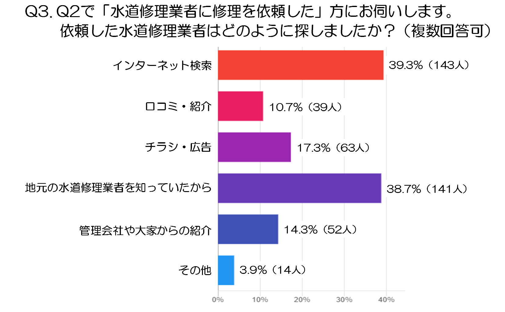 Q3.依頼した水道修理業者はどのように探しましたか?※Q2で「水道修理業者に修理を依頼した」と回答した人が対象(複数回答可)