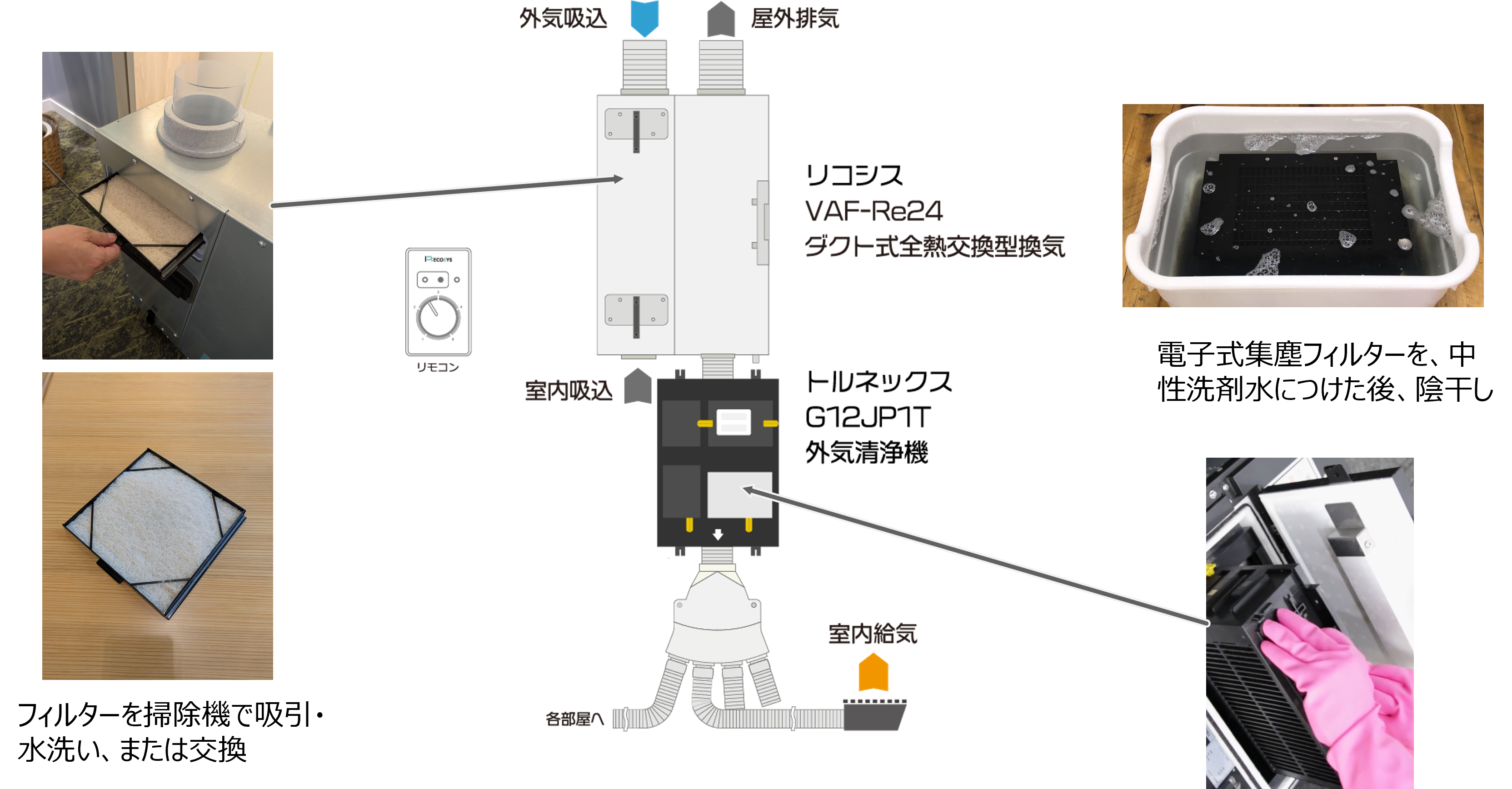 その取り組みの中で、「全熱交換型換気」と「外気清浄機」を直結させたシステムを今回新規に開発されました。自分も現地確認や分析にご一緒する中で、信頼できる貴重な実測データとなっていることを確認できました。