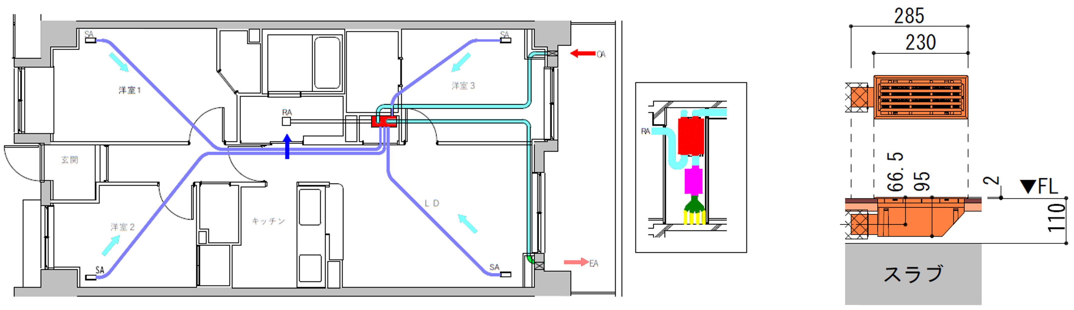 【設置例①】 マンションの二重床(置床空間)をダクト空間として利用