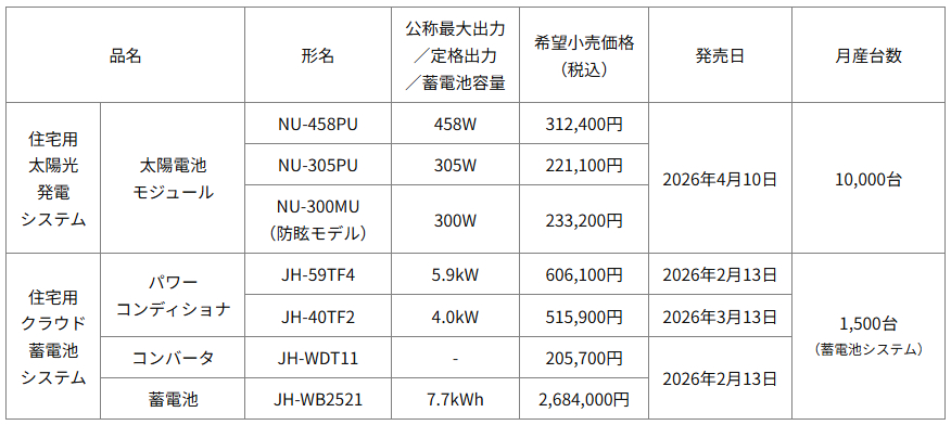 当社独自の住宅用エネルギーソリューション「Eeeコネクト」対応機器がパワーアップ