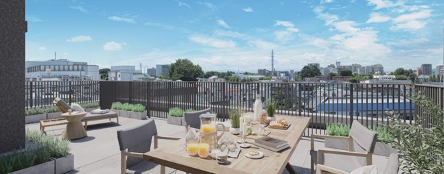 近年、再開発が進行している和光の先進性に響き合うデザインを追求。スタイリッシュなブラウンのガラスフェンスに浮かぶ柔らかな光沢や、最上階の軒裏を彩る木調仕上げなど、清新にして温かな表情を持つ世界観を表現しました。
