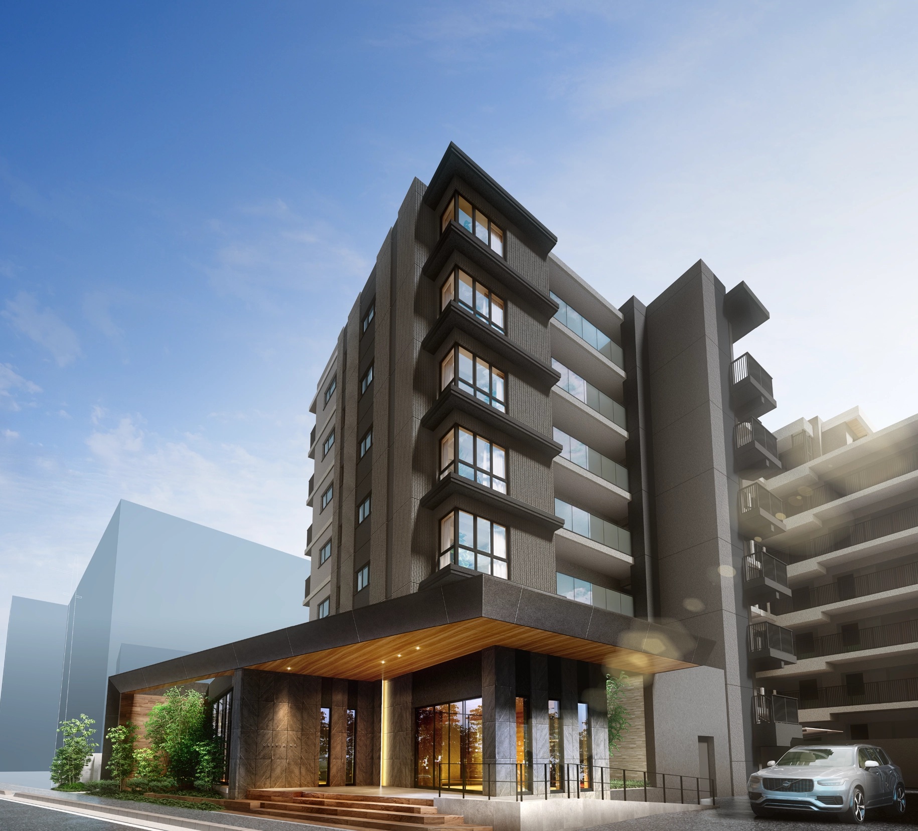 近年、再開発が進行している和光の先進性に響き合うデザインを追求。スタイリッシュなブラウンのガラスフェンスに浮かぶ柔らかな光沢や、最上階の軒裏を彩る木調仕上げなど、清新にして温かな表情を持つ世界観を表現しました。