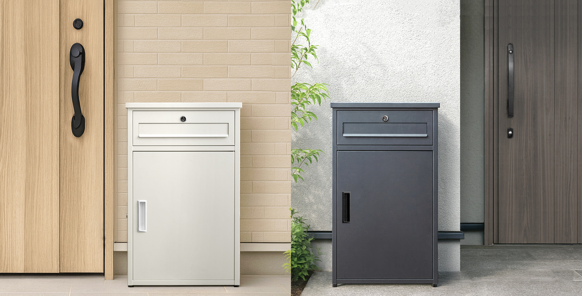 スマートなデザインとサイズ感で、大型の宅配ボックス設置に抵抗のある方でも取り入れやすく、ポスト受け取りの延長としてご使用いただけるラインナップです。