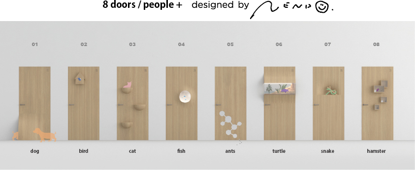 像すると、ドア自体が猫と人をつなぐ家具のようになります。