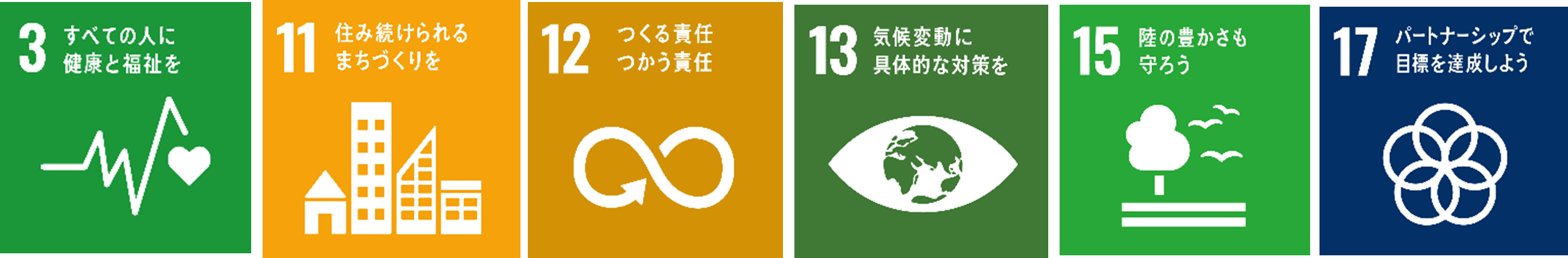 当社は、本技術の開発を通じて、SDGs番号3「すべての人に健康と福祉を」、SDGs番号11「住み続けられるまちづくりを」、SDGs番号12「つくる責任つかう責任」、SDGs番号13「気候変動に具体的な対策を」、SDGs番号15「陸の豊かさも守ろう」及びSDGs番号17「パートナーシップで目標を達成しよう」の実現に努めてまいります。
