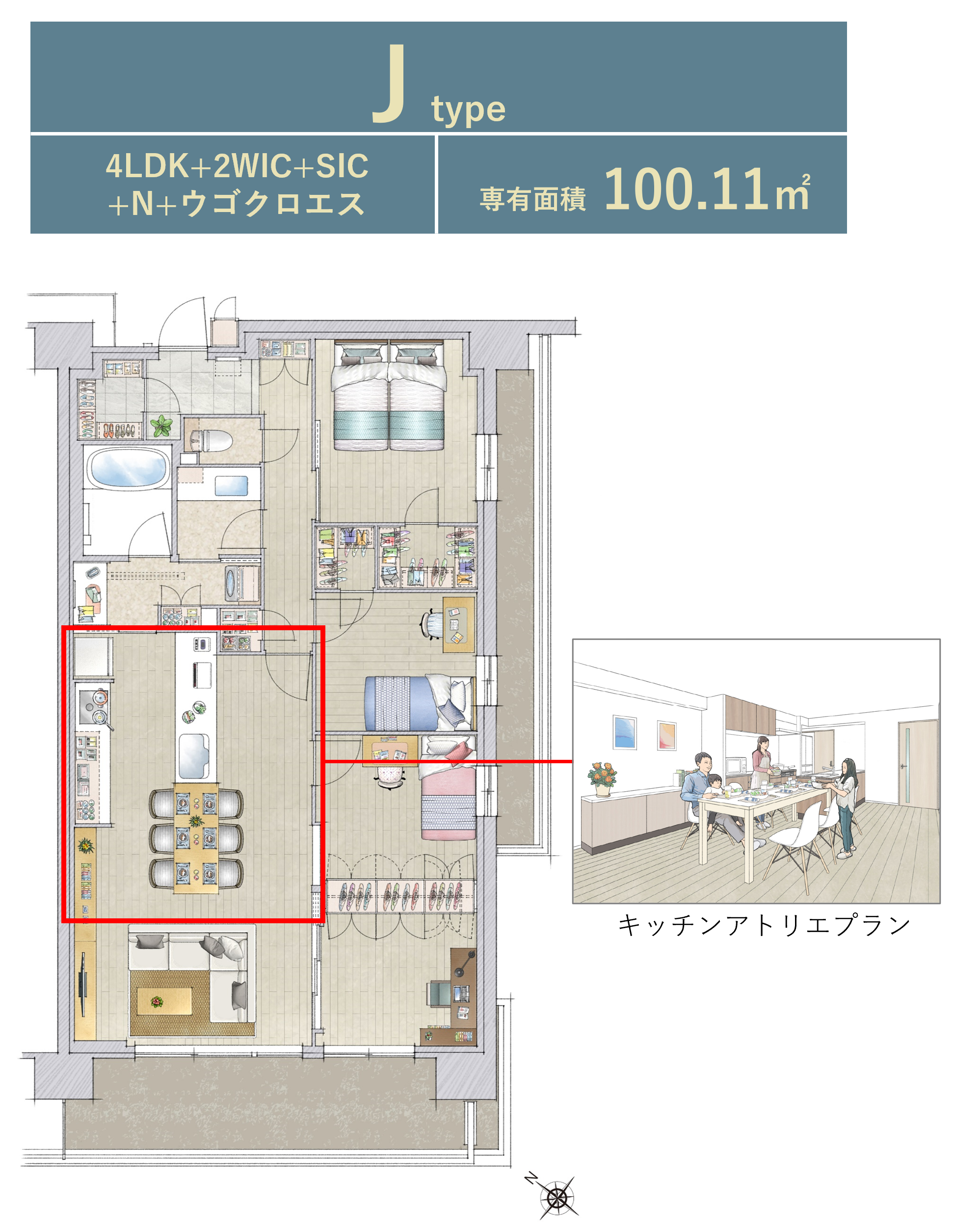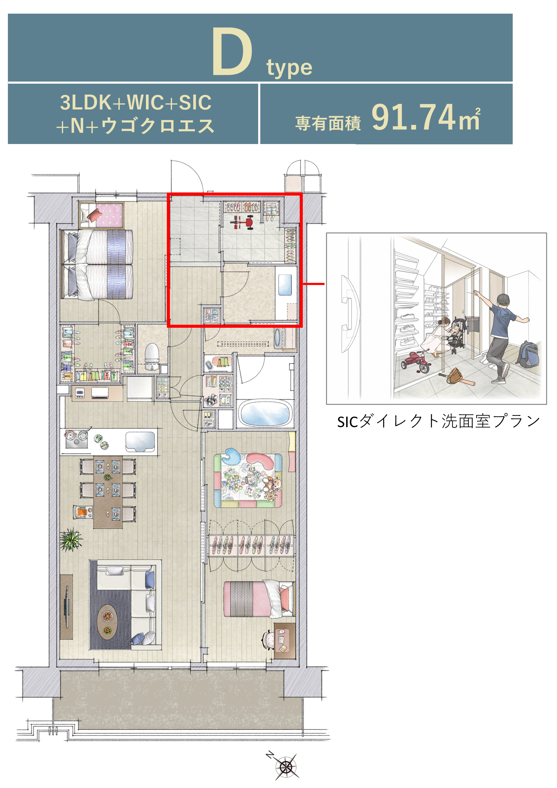 ※WIC=ウォークインクロゼット、SIC=シューズインクロゼット、N=納戸、FC=ファミリークロゼット
