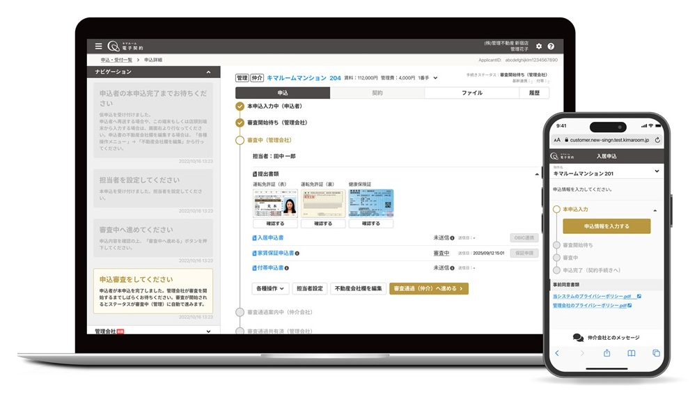 ②管理画面上で入居者・関係者とチャットでやりとりしながら申込・契約の操作が可能
