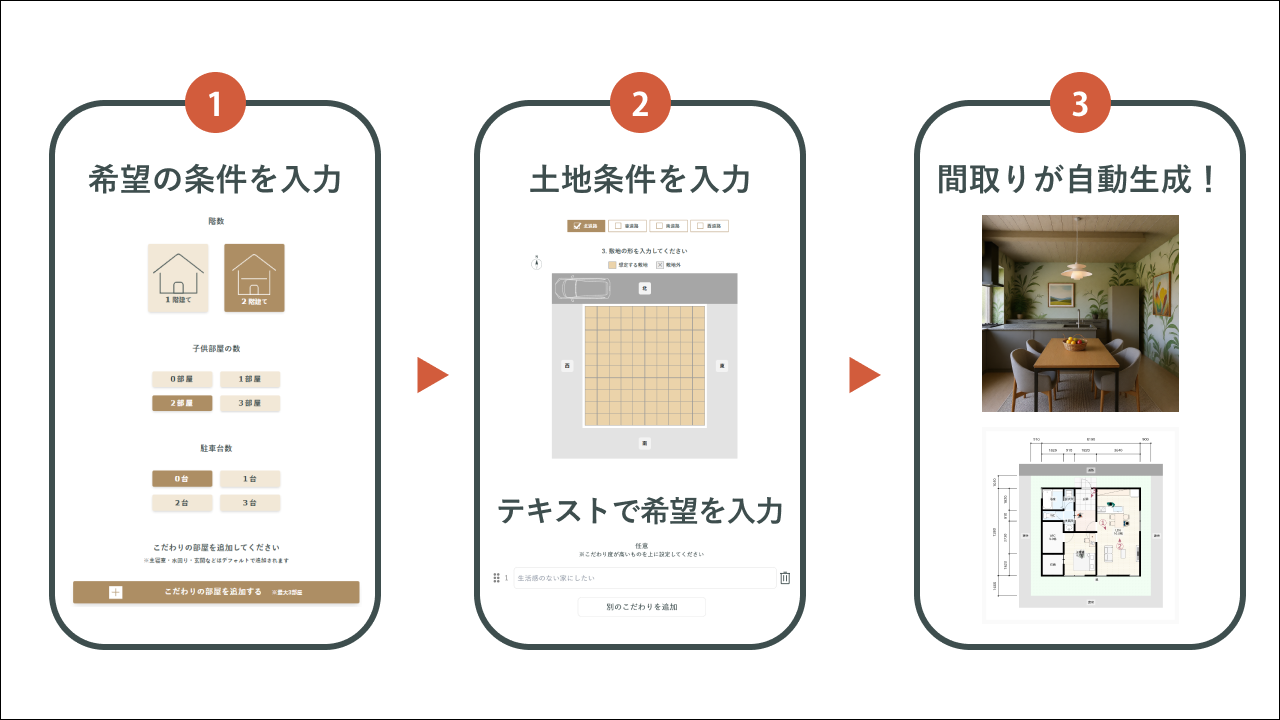 また、間取りの自動生成機能は今後も無料で提供し、家づくりの初期検討段階から理想の住まい像をスムーズに描ける環境を提供してまいります。