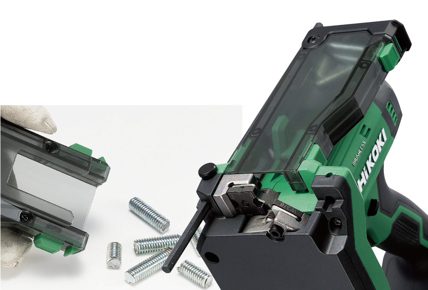 切断後の全ねじが落下しない着脱式コレクトボックスを標準付属。高所や室内作業での安全性を高め、清掃や後処理の手間を軽減します。落下物による事故リスクを抑えながら、作業の流れを止めず効率よく進められます。