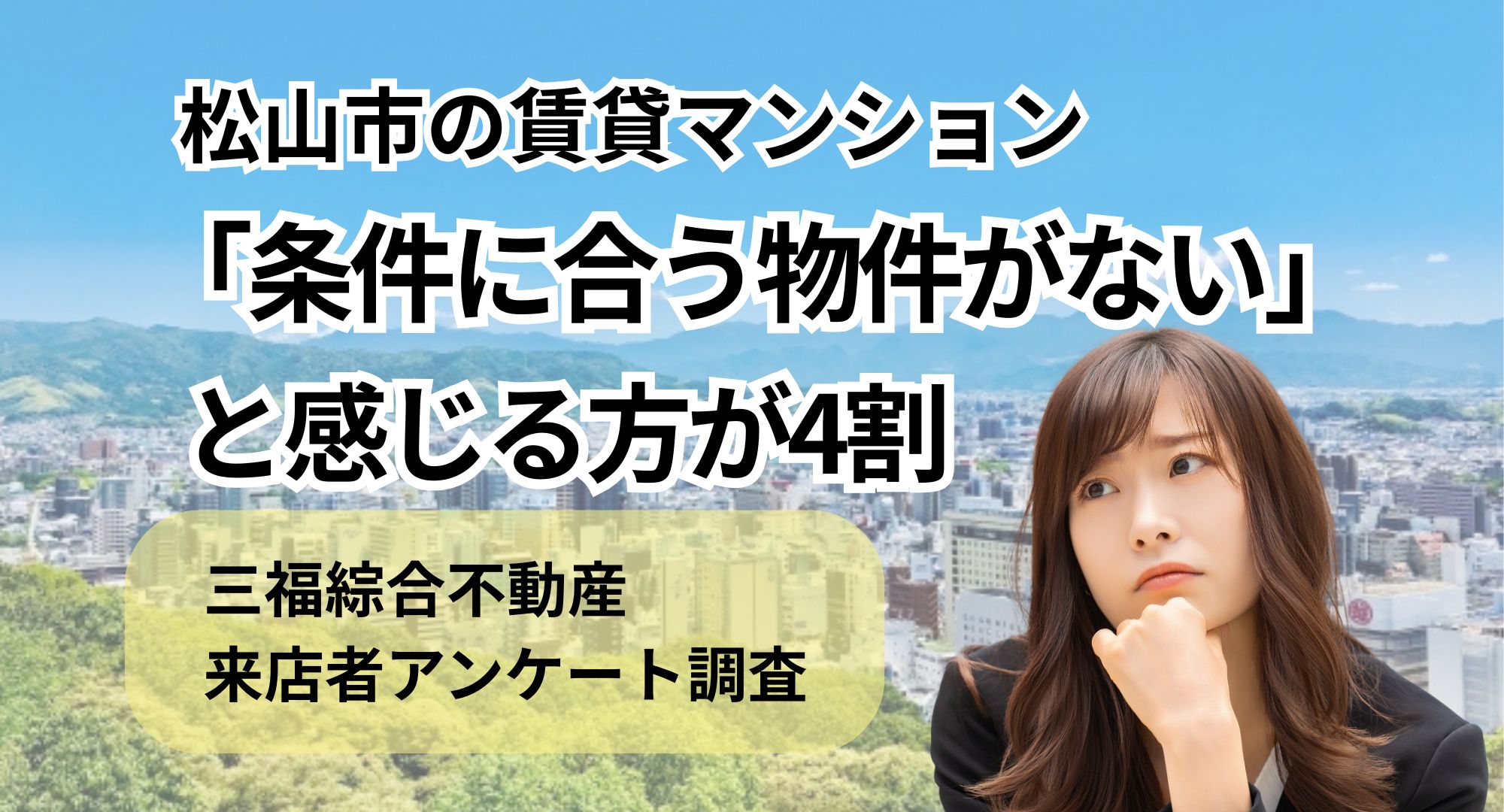 ホーム調査レポート「条件に合う物件がない」と感じる方が約4割|松山市の賃貸マンションについて来店者アンケート調査