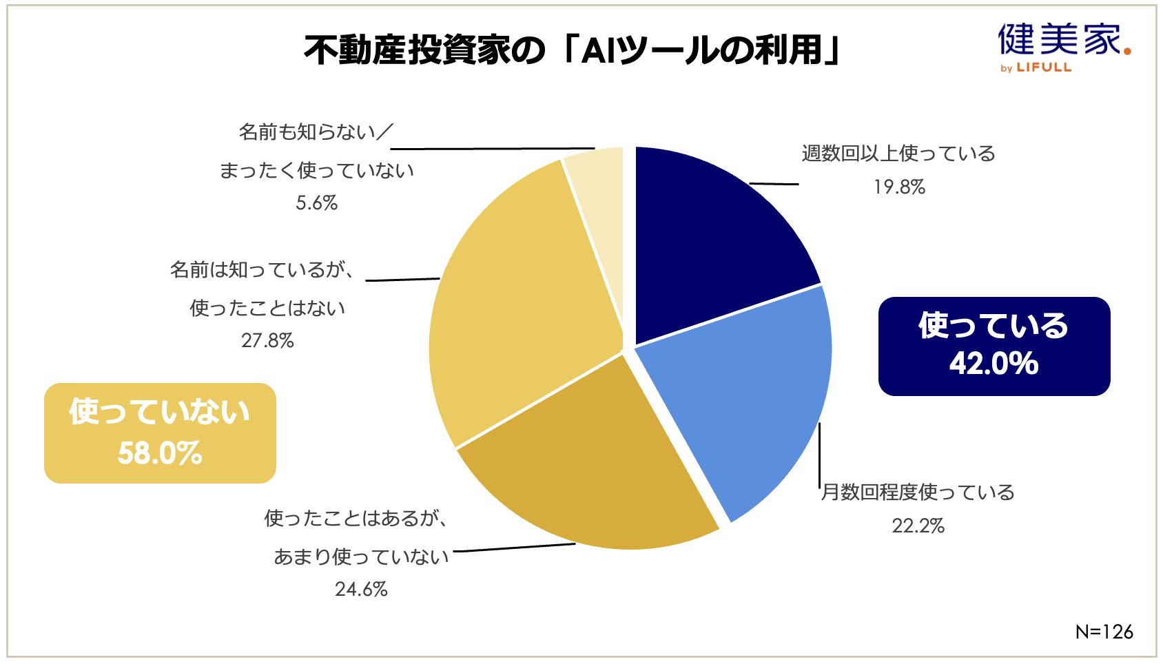 また、本アンケートでは、現在AIを利用していない58%の投資家からも「物件購入時のシミュレーション(利回り・キャッシュフロー計算)(58.6%)」、「情報収集(税制・ニュースなど)(44.3%)」、「戦略を考える時の相談(41.4%)」といった活用意向が寄せられており、潜在的な関心の高さがうかがえます。こうした層が実際の利用へと移行することで、利用率は今後さらに増加していくと考えられます。[図12]