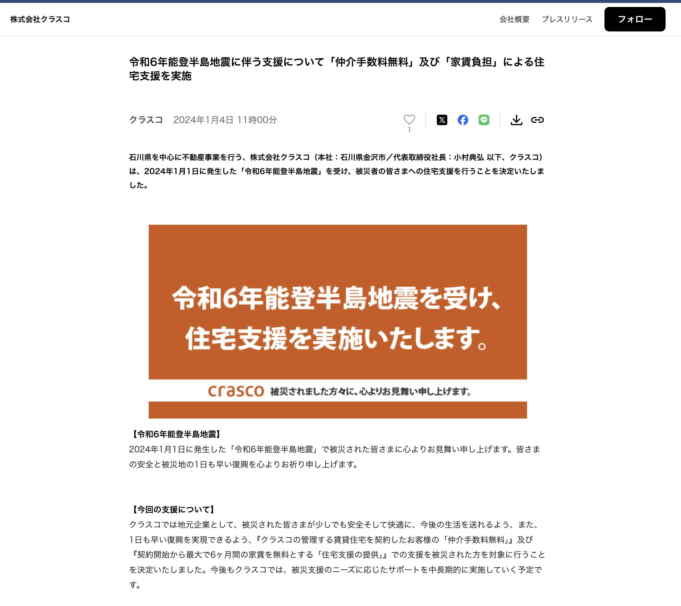 能登半島地震後、住宅確保が喫緊の課題となる中、クラスコは管理物件を最大限に活用し、迅速な入居支援を行いました。これは、地元企業の使命であると考えています。また、家賃アップ戦略は、地域全体の賃貸物件の質を向上させ、持続可能な街づくりに貢献する取り組みでもあります。クラスコが掲げる「GO FUN LIFE(楽しい人生)」を、地域社会全体で体現することを目指しています。
