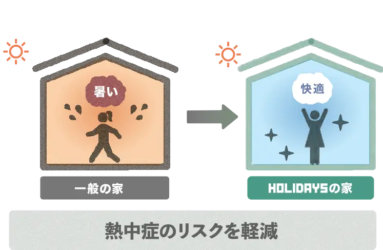急激な温度変化による「ヒートショック」や、夏場に室内で起こりやすい「熱中症」のリスクを抑え、ご家族の健康を24時間守ります。