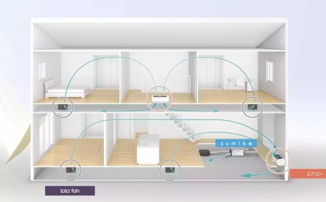 「マッハシステム」は、空調室に設置した家庭用エアコン1台で家全体を快適にします。