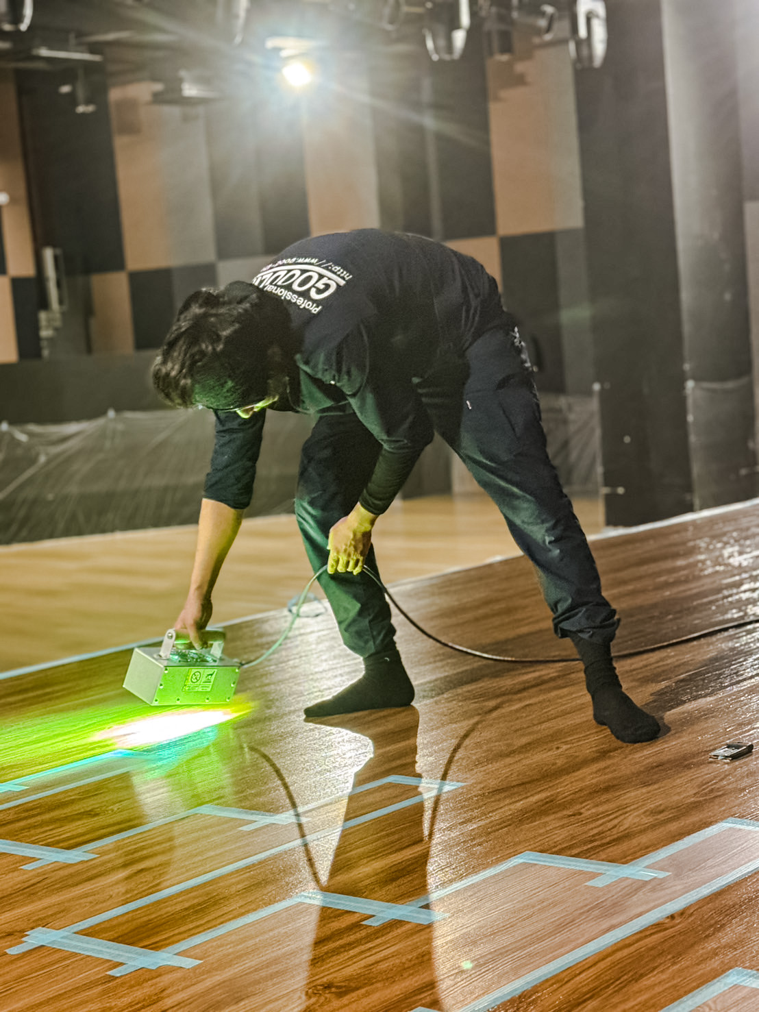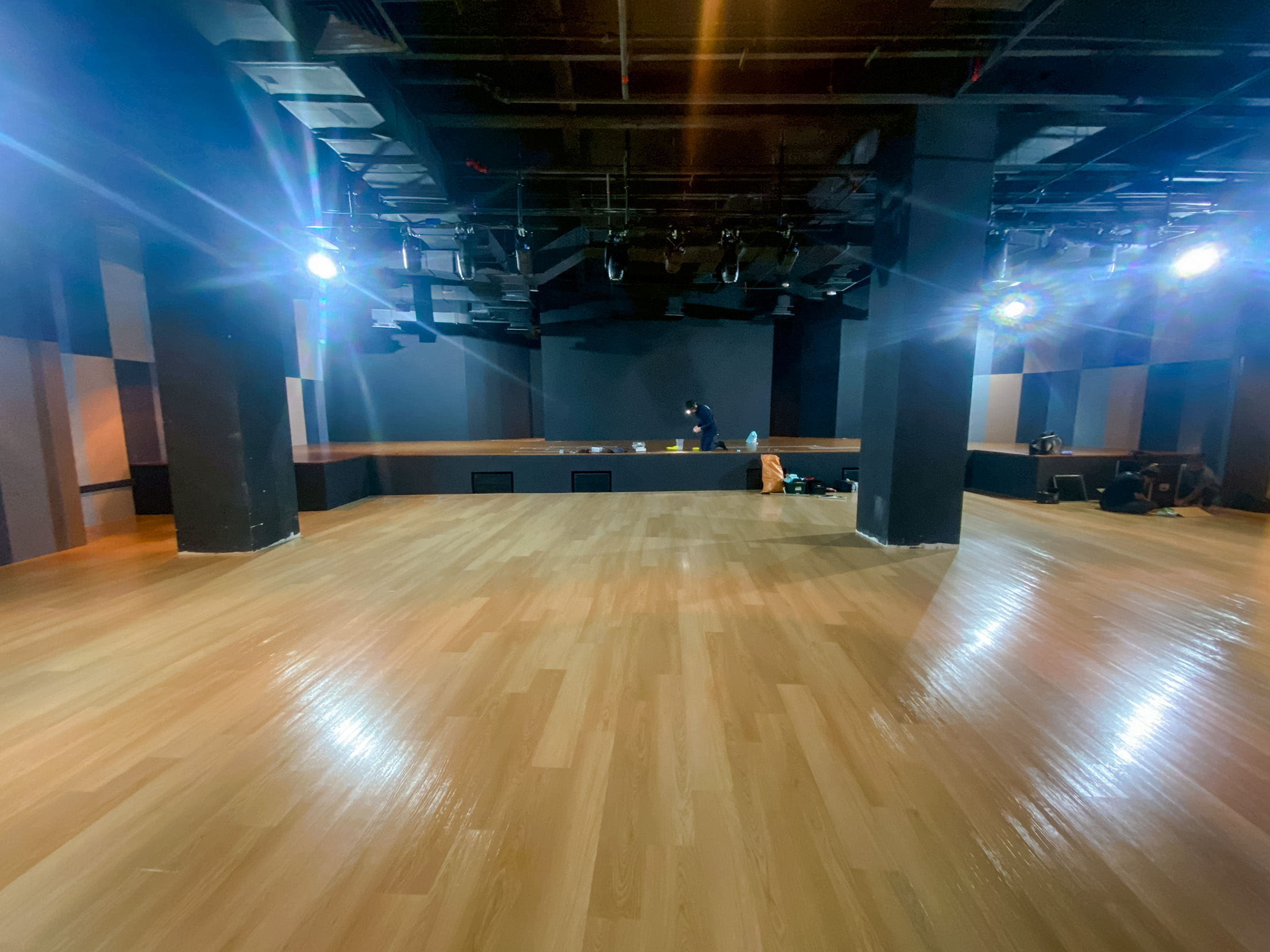 本劇場に、日本国内で住宅のフロアコーティンを手掛けるグッドライフがステージや客席にグッドライフコート色とハイブリット光触媒GLコートを施工した。