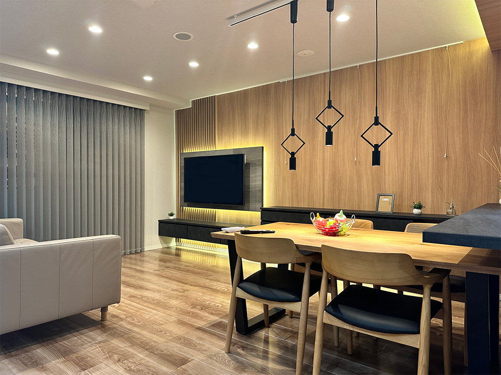 表面硬度は9 H、速乾性で施工後即入居可、塩素系薬品の耐性あり、滑り止め効果、仕上がりは設置する家具に溶け込む微光沢。グッドライフの技術を集約した特殊UVコーティング。
