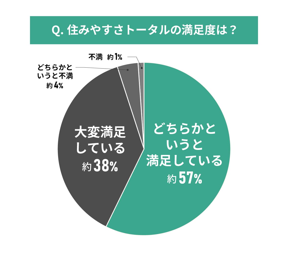 どちらかというと満足している:約57%