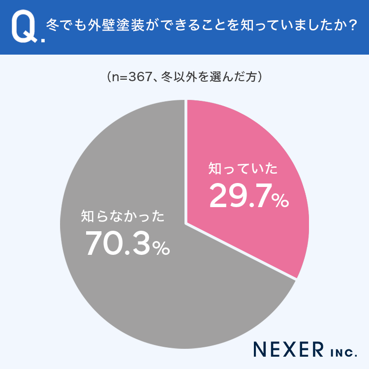 さらに、「外壁塗装を行うのが良いと思う時期」で「冬以外」を選んだ方に、冬でも外壁塗装ができることを知っているか聞いてみました。