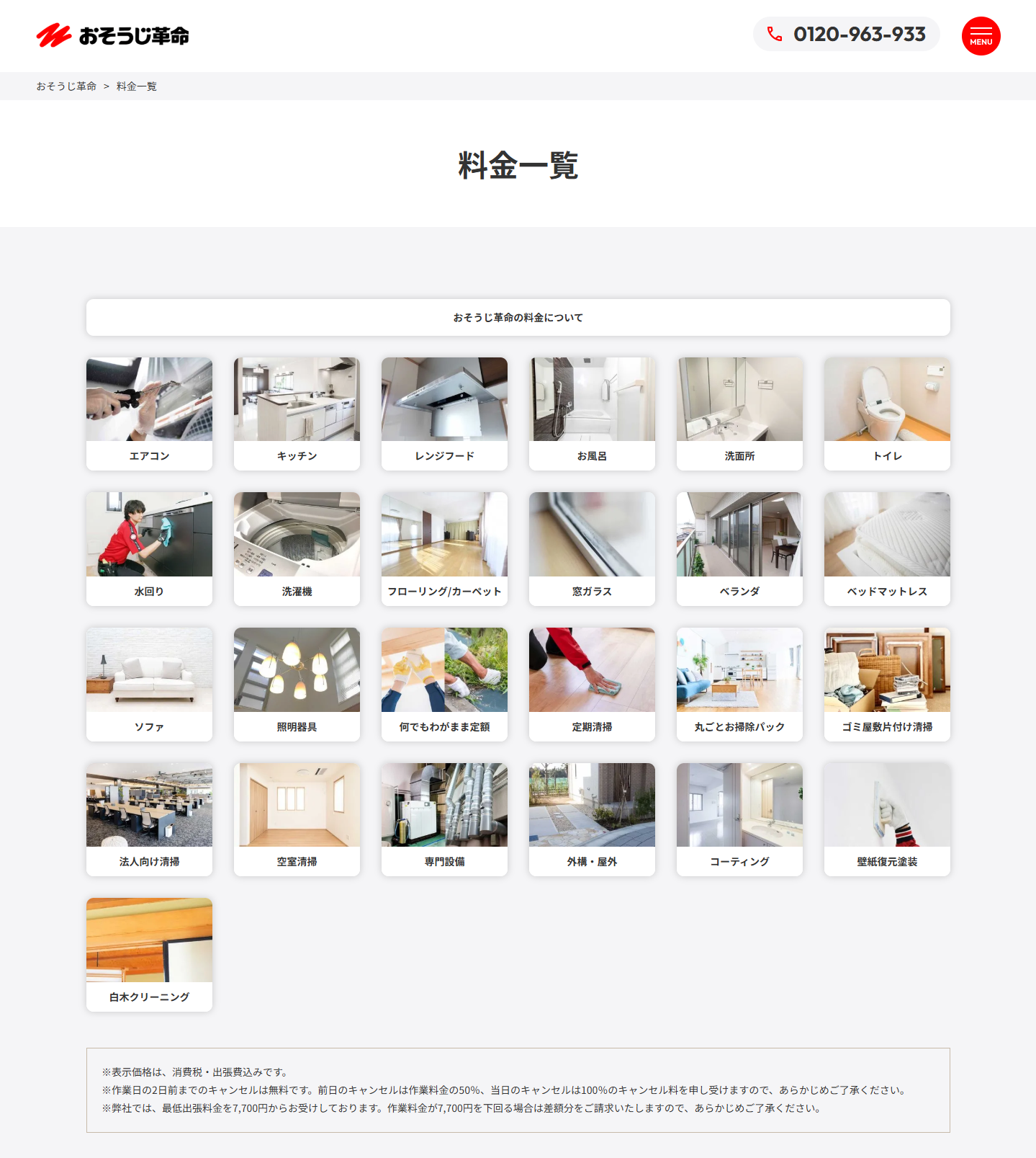 各サービスの内容や清掃範囲をより具体的に整理しました。