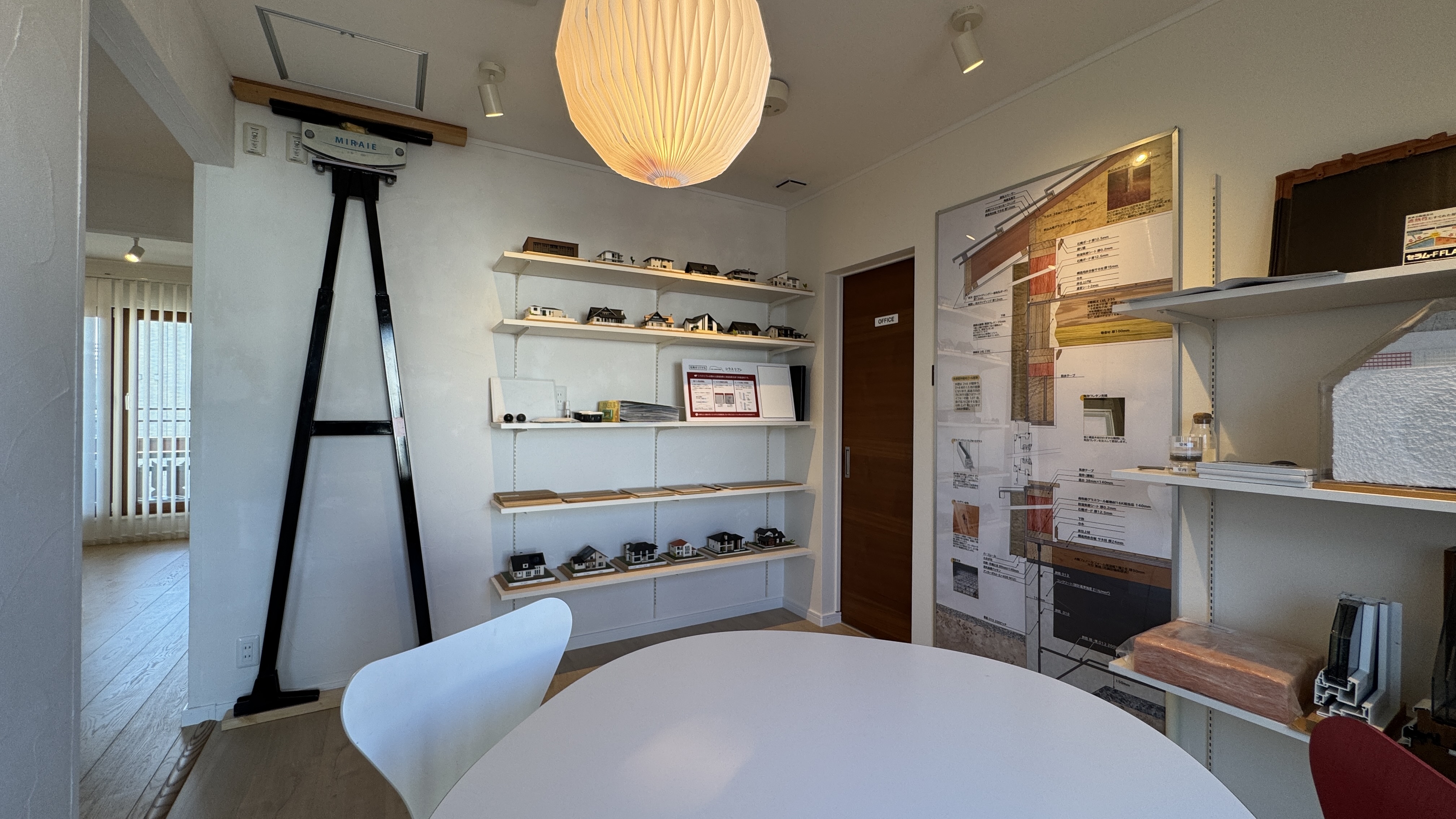 2階の子供部屋には、高い耐久性とデザイン性で知られる「PERGO(ペルゴ)フロア」を採用。さらに、当社の高い断熱性能や独自技術を視覚的に紹介する「構造説明ルーム」を新設しました。